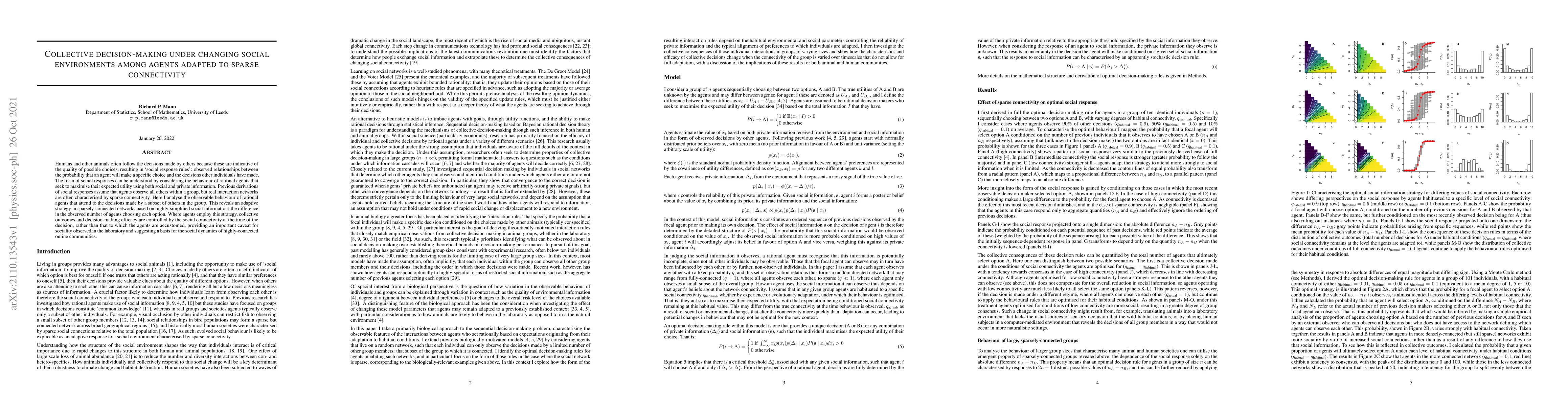 This paper examines how rational agents make collective decisions in sparsely connected networks, revealing an adaptive strategy based on simplified social information. The study finds that decision-making efficacy depends on current social connectivity, challenging assumptions based on fully connected models and offering insights into social dynamics in online communities.