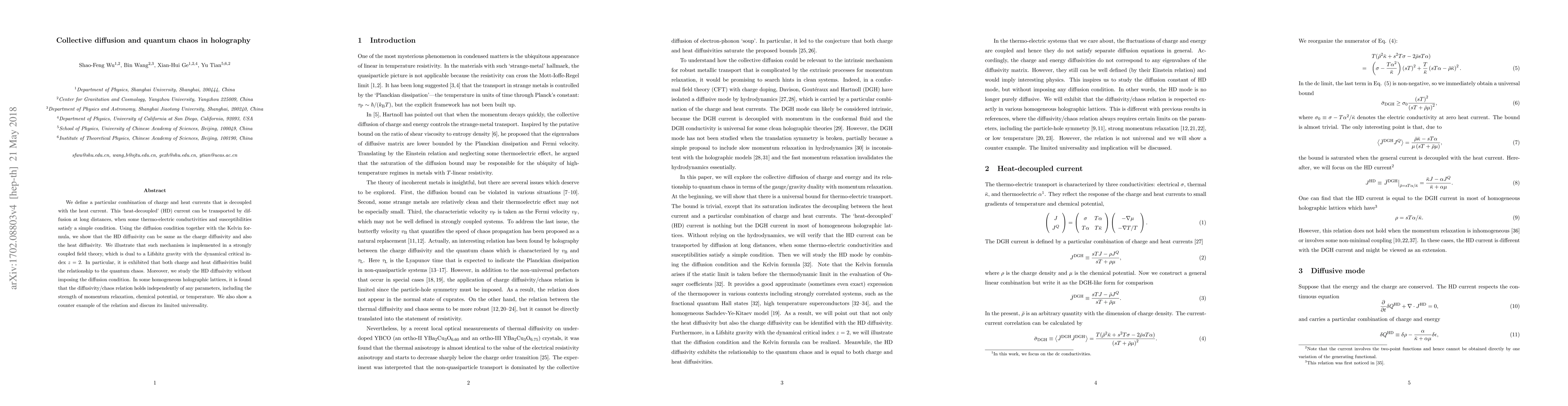 This paper explores a "heat-decoupled" current in strongly coupled field theories dual to Lifshitz gravity, demonstrating that its diffusivity matches charge and heat diffusivities. It finds that this relationship, linking diffusivity and quantum chaos, holds universally in certain holographic lattices regardless of external parameters.