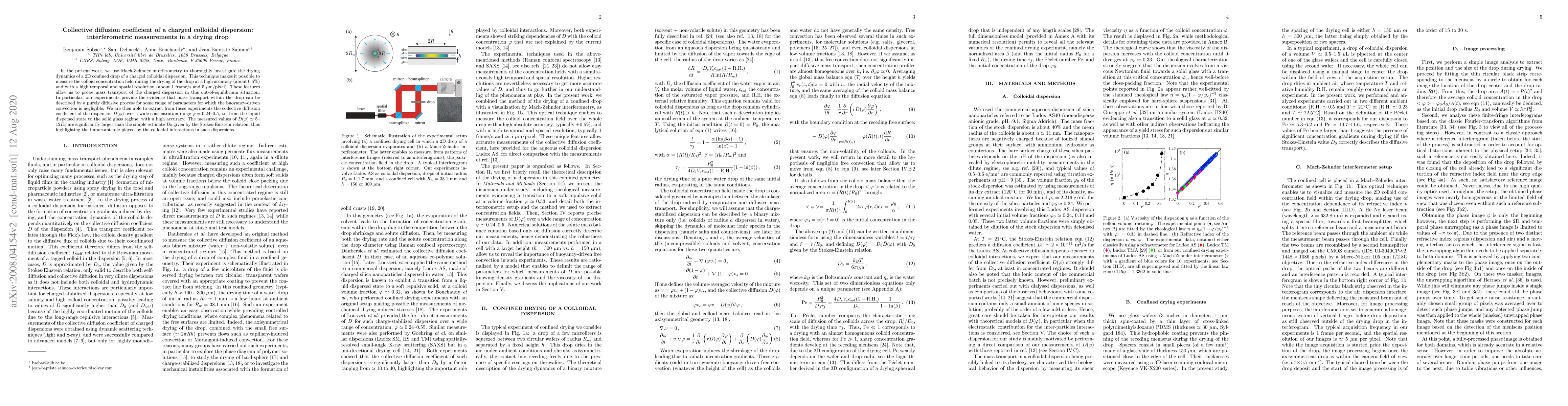 This study uses Mach-Zehnder interferometry to measure the drying dynamics of a 2D confined drop of charged colloidal dispersion, revealing a purely diffusive mass transport process. The collective diffusion coefficient $D(\varphi)$ was extracted, showing values significantly larger than the Stokes-Einstein estimate, emphasizing the influence of colloidal interactions.