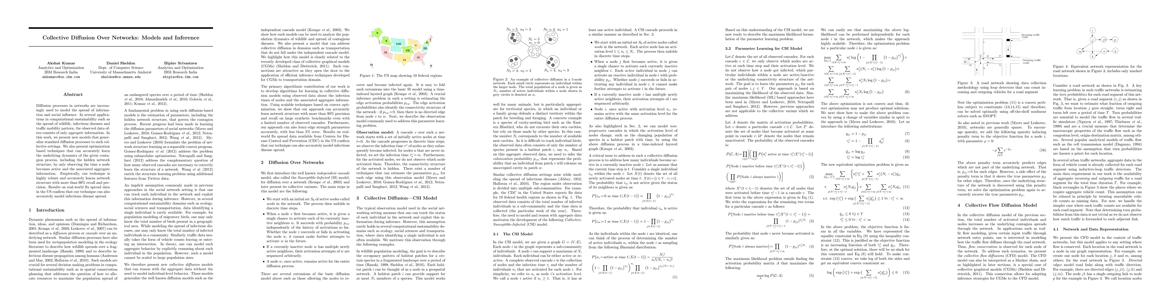 Diffusion processes in networks are increasingly used to model the spread of information and social influence. In several applications in computational sustainability such as the spread of wildlife, infectious diseases and traffic mobility pattern, the observed data often consists of only aggregate information. In this work, we present new models that generalize standard diffusion processes to such collective settings. We also present optimization based techniques that can accurately learn the underlying dynamics of the given contagion process, including the hidden network structure, by only observing the time a node becomes active and the associated aggregate information. Empirically, our technique is highly robust and accurately learns network structure with more than 90% recall and precision. Results on real-world flu spread data in the US confirm that our technique can also accurately model infectious disease spread.