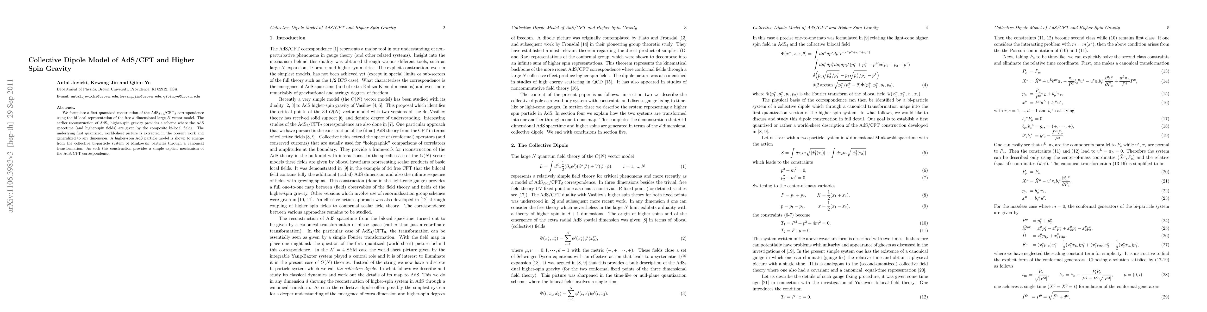 This paper formulates a first-quantized construction of the AdS/CFT correspondence using the bi-local representation of the large N vector model, generalizing the reconstruction of AdS_4 higher-spin gravity to any dimension. It demonstrates a higher-spin AdS particle model emerging from a collective bi-particle system via a canonical transformation, providing a clear mechanism for the AdS/CFT duality.