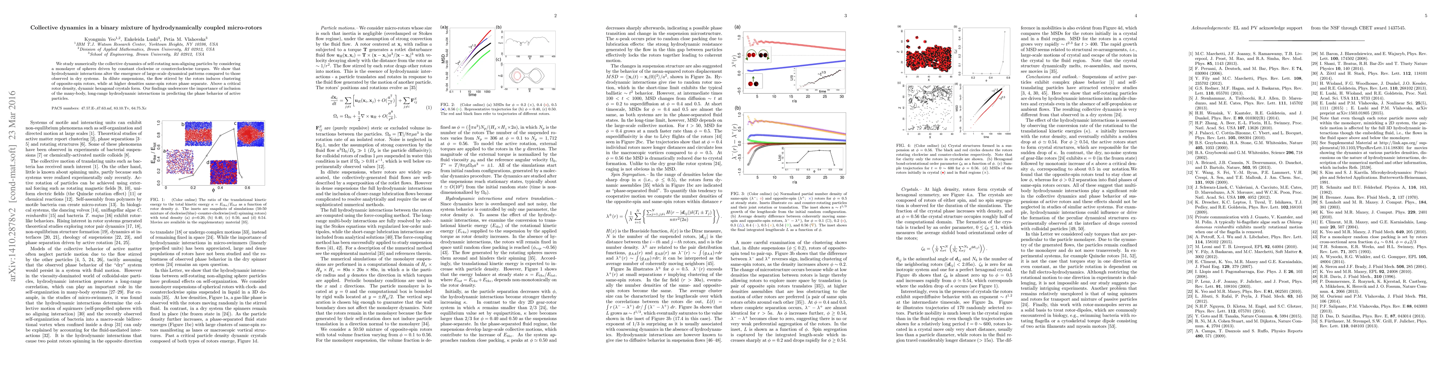 We study, numerically, the collective dynamics of self-rotating nonaligning particles by considering a monolayer of spheres driven by constant clockwise or counterclockwise torques. We show that hydrodynamic interactions alter the emergence of large-scale dynamical patterns compared to those observed in dry systems. In dilute suspensions, the flow stirred by the rotors induces clustering of opposite-spin rotors, while at higher densities same-spin rotors phase separate. Above a critical rotor density, dynamic hexagonal crystals form. Our findings underscore the importance of inclusion of the many-body, long-range hydrodynamic interactions in predicting the phase behavior of active particles.