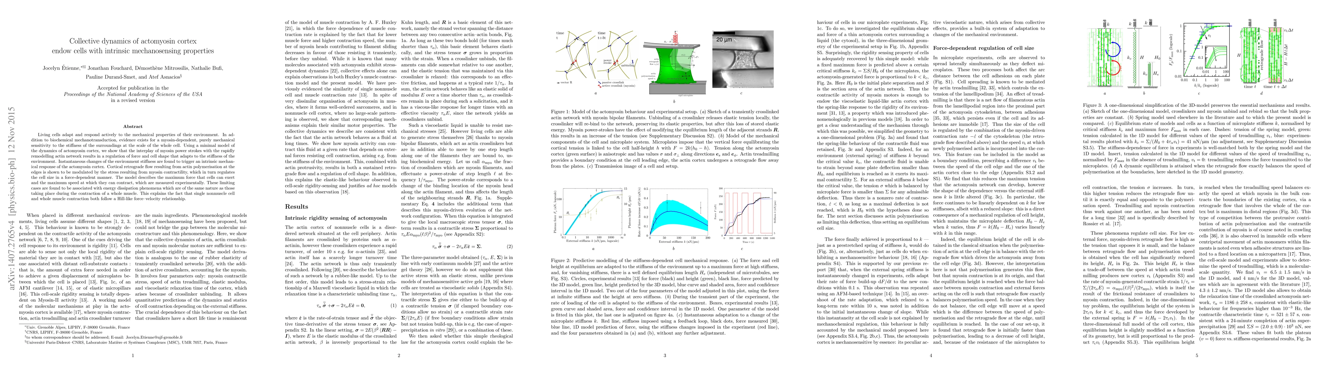 This paper demonstrates that the collective dynamics of the actomyosin cortex enable cells to intrinsically sense and adapt to their mechanical environment, driven by the interplay between myosin contractility and actin network remodeling. The model reveals a force-dependent regulation of cell size and a Hill-like force-velocity relationship, akin to muscle contraction, highlighting energy dissipation phenomena.