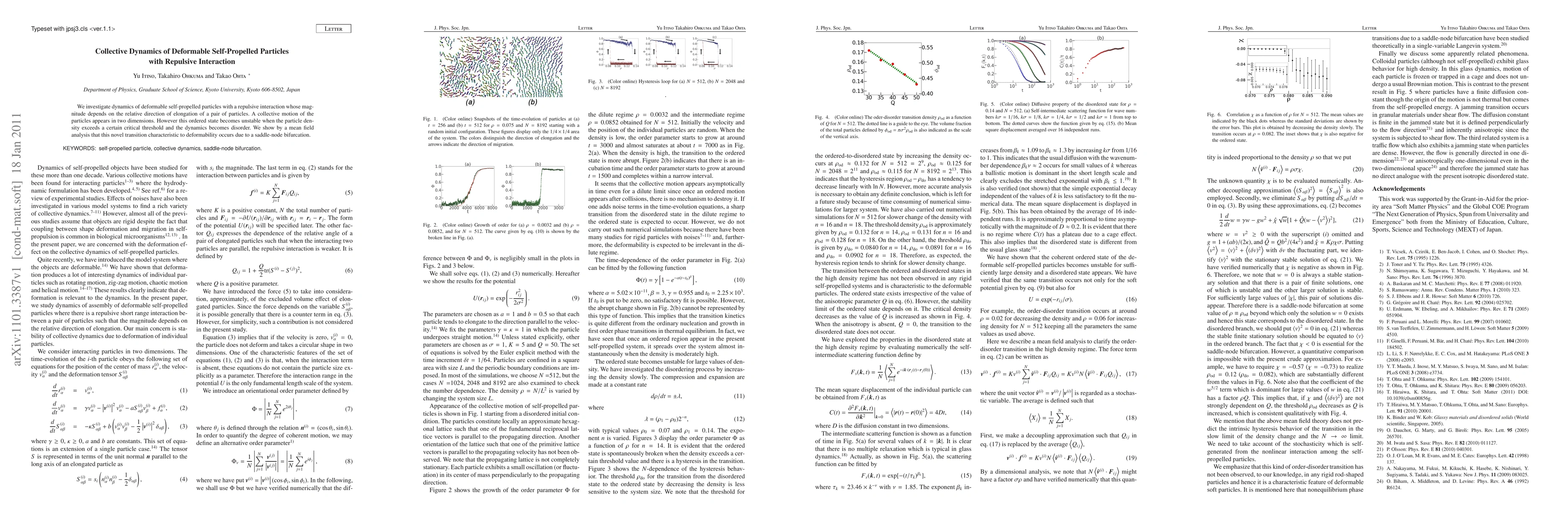This paper explores the collective dynamics of deformable self-propelled particles with direction-dependent repulsive interactions, revealing that a stable ordered state emerges in two dimensions until a critical density is reached, leading to a disorder via a saddle-node bifurcation, as shown by mean field analysis.