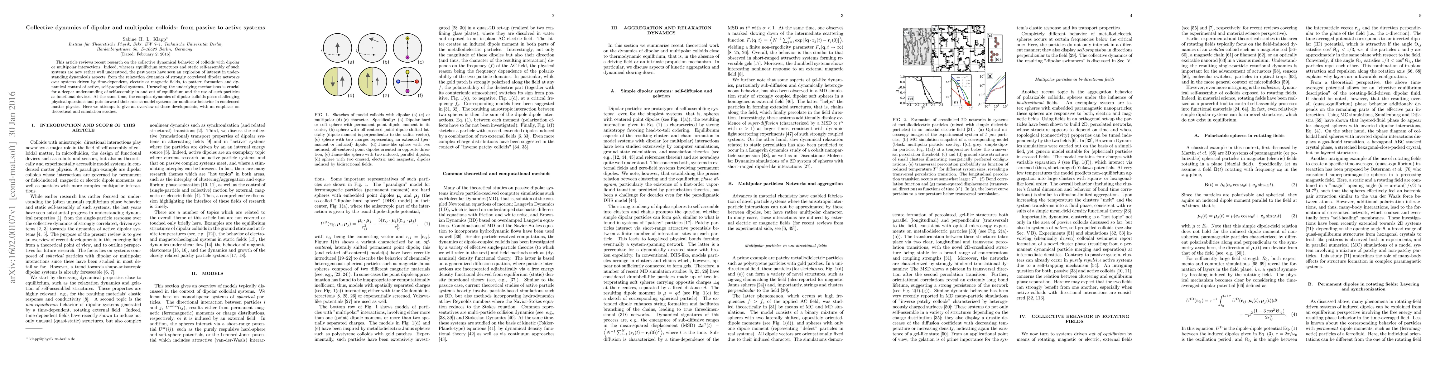 This paper reviews recent advances in understanding the collective dynamical behavior of dipolar and multipolar colloids, focusing on their relaxation dynamics, response to external fields, and pattern formation in active systems. It highlights the importance of these studies for developing functional devices and understanding nonlinear behavior in condensed matter physics.