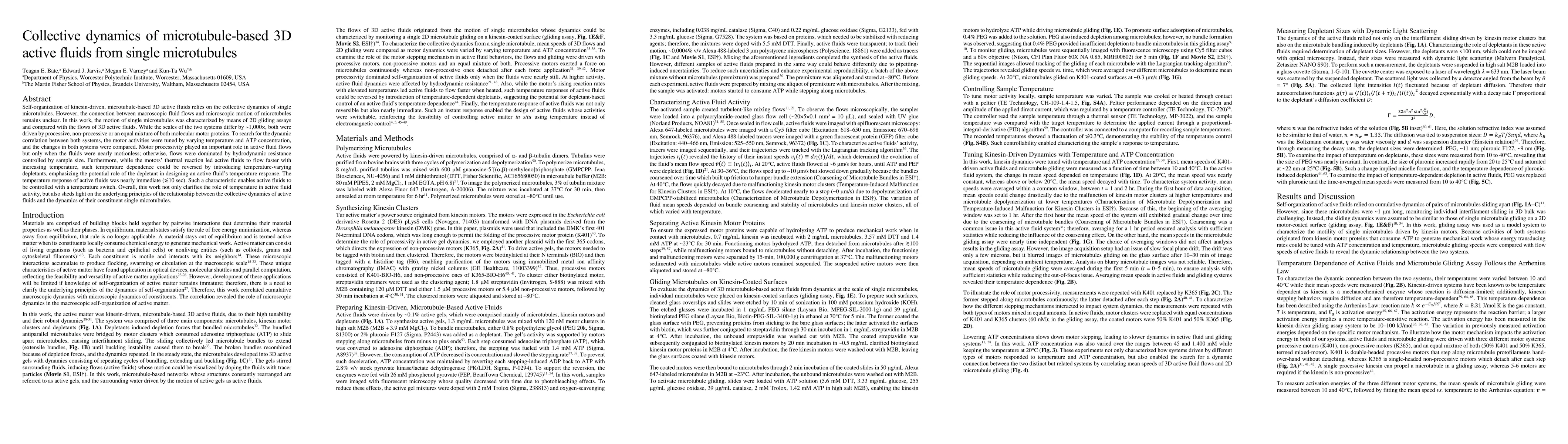 Researchers studied the dynamics of microtubules in 3D active fluids and found that motor activity plays a crucial role in fluid flow, especially when fluids are nearly motionless. The temperature of the system can be controlled to adjust fluid flow speed, offering potential for designing and controlling active fluids with a temperature switch.