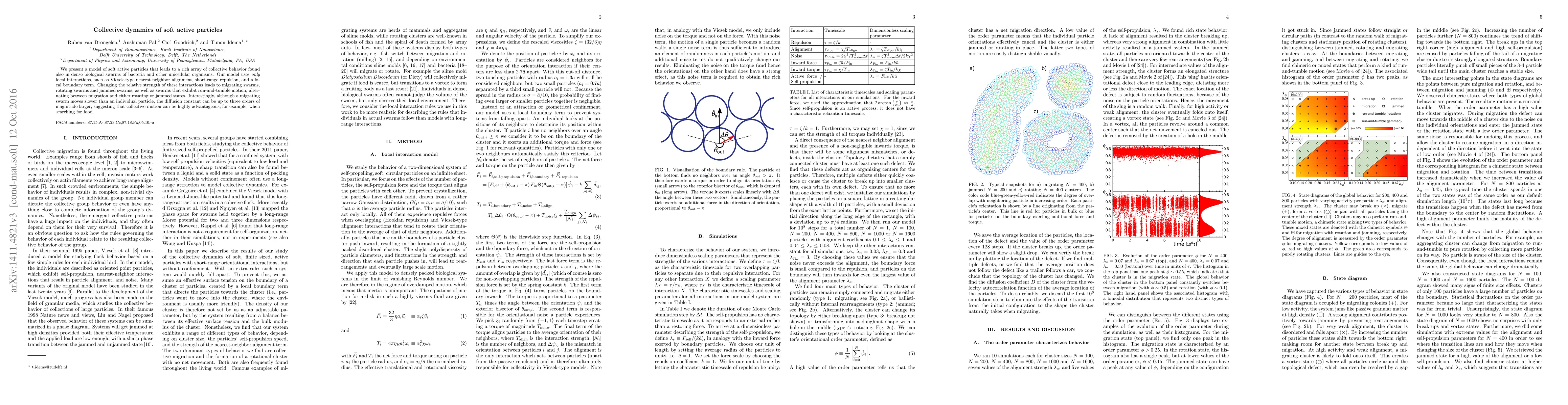 We present a model of soft active particles that leads to a rich array of collective behavior found also in dense biological swarms of bacteria and other unicellular organisms. Our model uses only local interactions, such as Vicsek-type nearest neighbor alignment, short-range repulsion, and a local boundary term. Changing the relative strength of these interactions leads to migrating swarms, rotating swarms and jammed swarms, as well as swarms that exhibit run-and-tumble motion, alternating between migration and either rotating or jammed states. Interestingly, although a migrating swarm moves slower than an individual particle, the diffusion constant can be up to three orders of magnitude larger, suggesting that collective motion can be highly advantageous, for example, when searching for food.