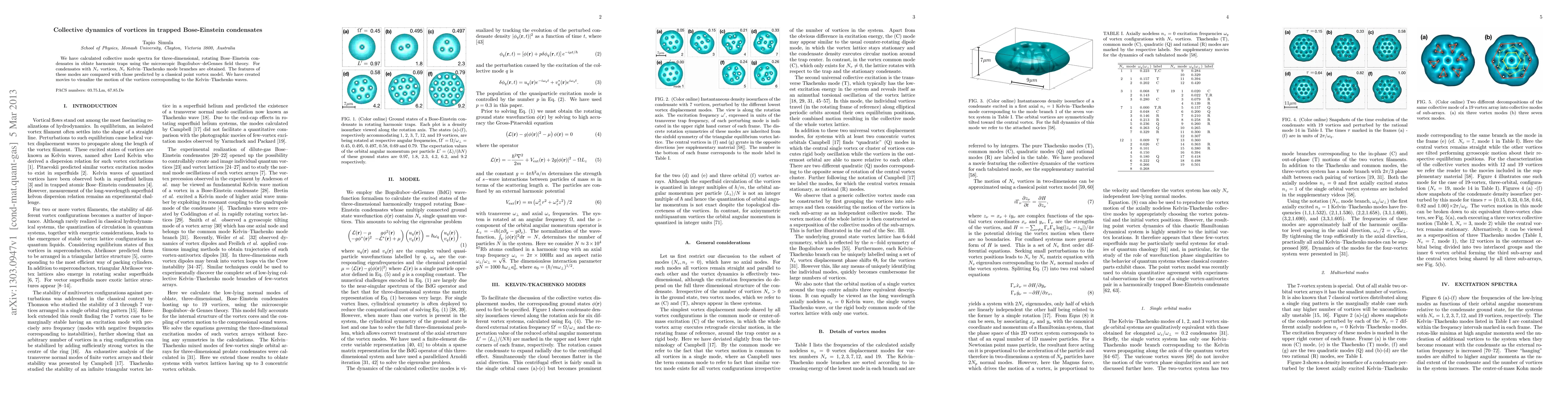 This study calculates the collective mode spectra for rotating Bose-Einstein condensates with vortices in oblate harmonic traps using microscopic theory, revealing $N_v$ Kelvin-Tkachenko modes per vortex. The findings are compared with classical point vortex models and visualized through movies.