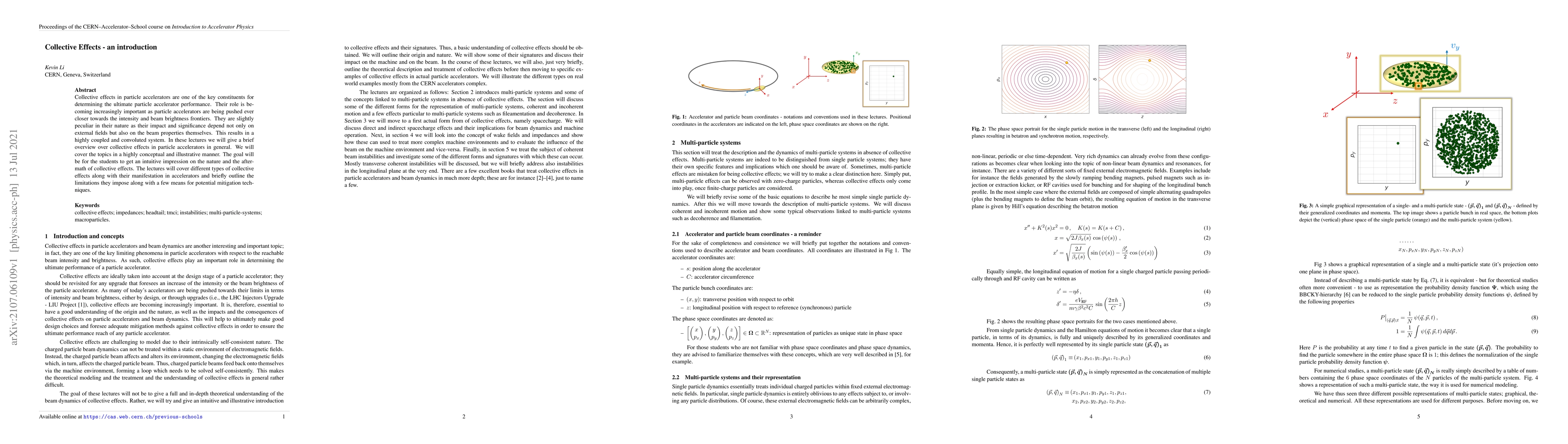 Collective effects in particle accelerators are one of the key constituents for determining the ultimate particle accelerator performance. Their role is becoming increasingly important as particle accelerators are being pushed ever closer towards the intensity and beam brightness frontiers. They are slightly peculiar in their nature as their impact and significance depend not only on external fields but also on the beam properties themselves. This results in a highly coupled and convoluted system. In these lectures we will give a brief overview over collective effects in particle accelerators in general. We will cover the topics in a highly conceptual and illustrative manner. The goal will be for the students to get an intuitive impression on the nature and the aftermath of collective effects. The lectures will cover different types of collective effects along with their manifestation in accelerators and briefly outline the limitations they impose along with a few means for potential mitigation techniques.