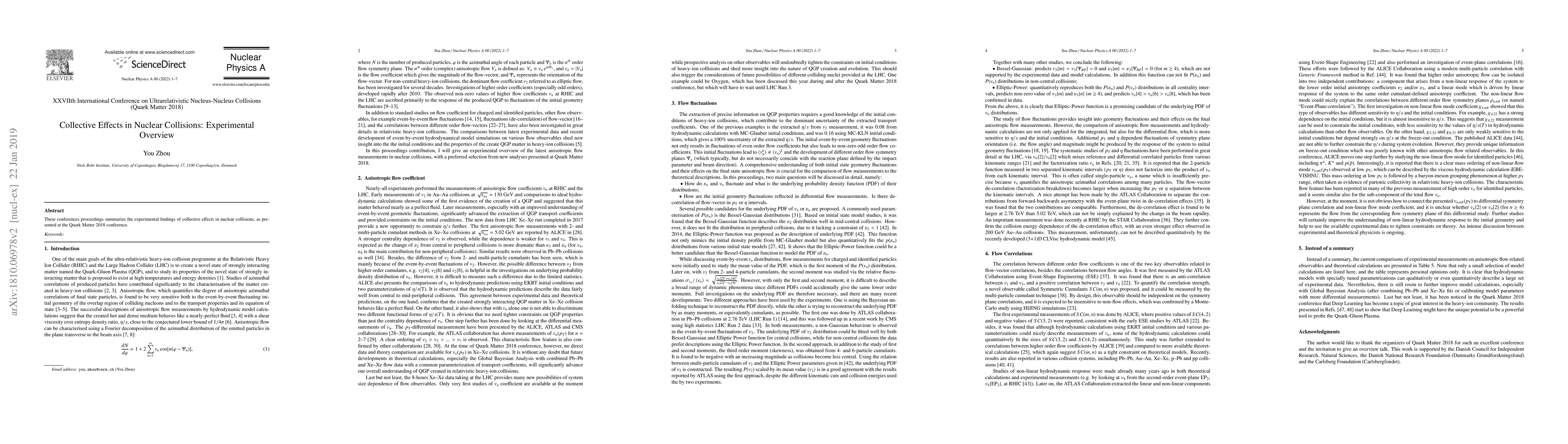 These conferences proceedings summarize the experimental findings of collective effects in nuclear collisions, as presented at the Quark Matter 2018 conference.