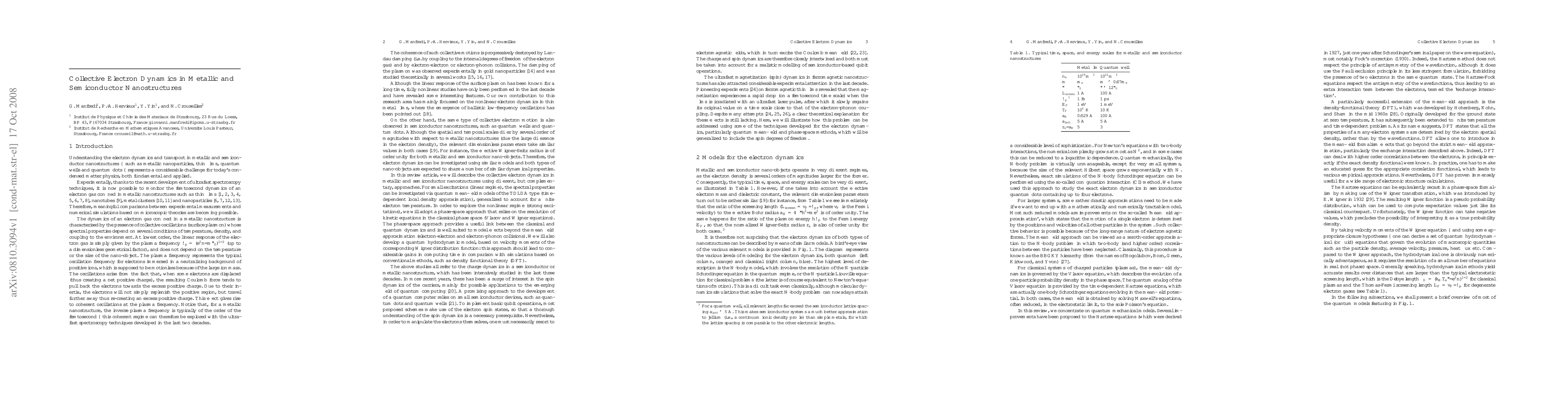 The paper presents a comprehensive review of theoretical models for describing electron dynamics in metallic and semiconductor nanostructures, including quantum hydrodynamic models and phase-space approaches.