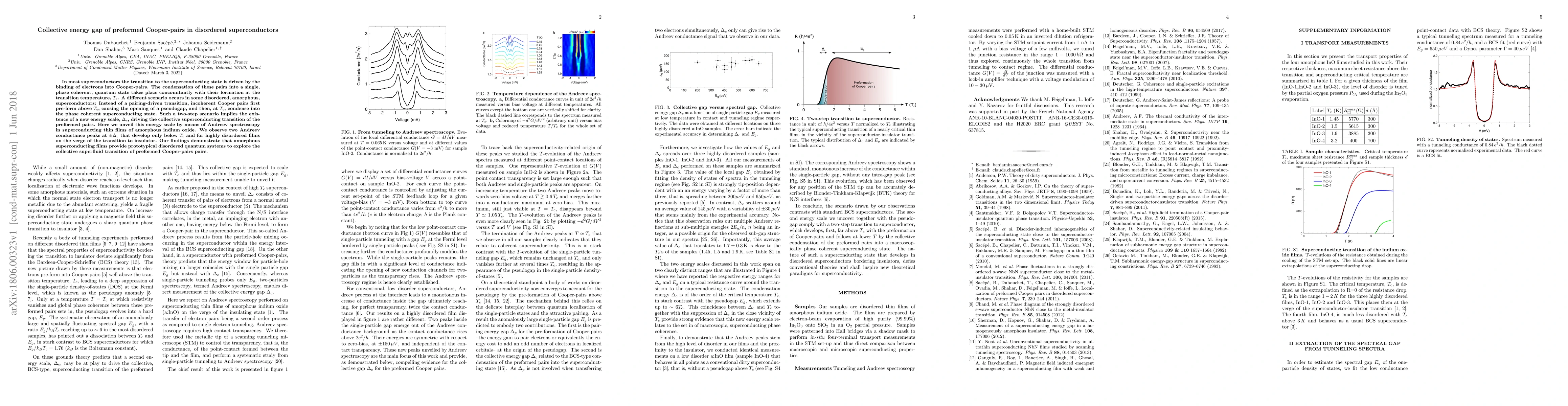 This paper investigates the collective energy gap, $\Delta_{c}$, of preformed Cooper-pairs in disordered superconductors, revealing a two-step transition process. Using Andreev spectroscopy, the study identifies two conductance peaks at $\pm \Delta_{c}$ in amorphous indium oxide films, indicating the collective superfluid transition of preformed pairs.