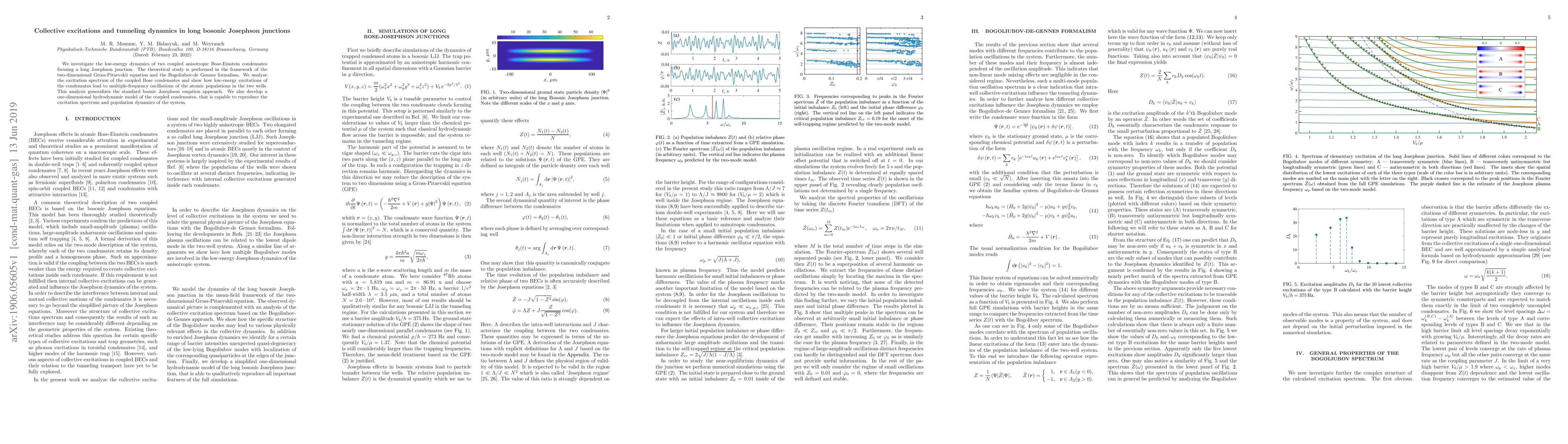Researchers studied the dynamics of two coupled anisotropic Bose-Einstein condensates in a long Josephson junction, revealing low-energy excitations that lead to multiple-frequency oscillations of atomic populations.