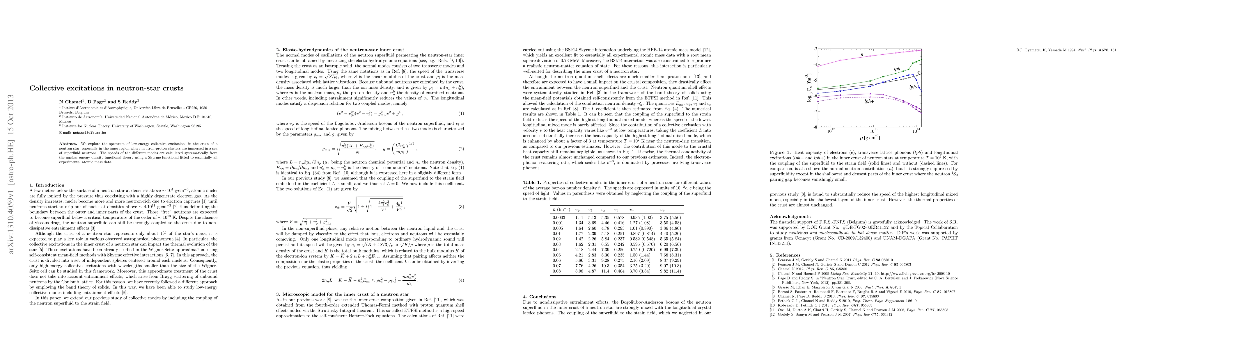 This paper investigates the low-energy collective excitations in neutron star crusts, focusing on the inner region where neutron-proton clusters exist within a superfluid neutron sea. The study systematically calculates the speeds of these modes using nuclear energy density functional theory and a Skyrme functional based on experimental atomic mass data.