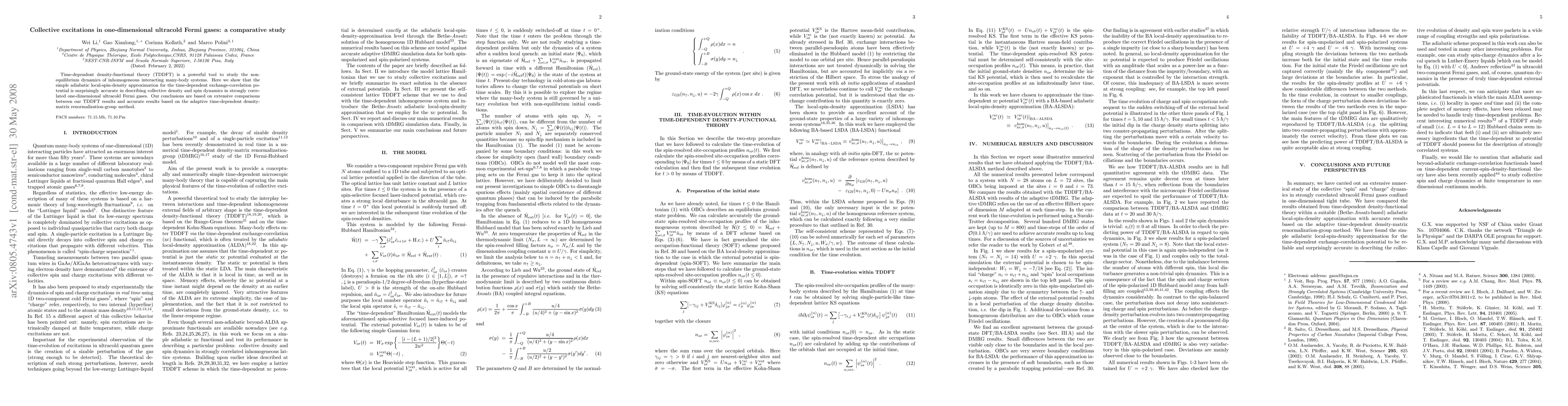 This paper demonstrates that the adiabatic local-spin-density approximation in TDDFT is remarkably accurate for describing collective excitations in one-dimensional ultracold Fermi gases, as validated through comparisons with the adaptive time-dependent density-matrix renormalization-group method. The study highlights the potential of TDDFT for analyzing non-equilibrium dynamics in strongly correlated systems.