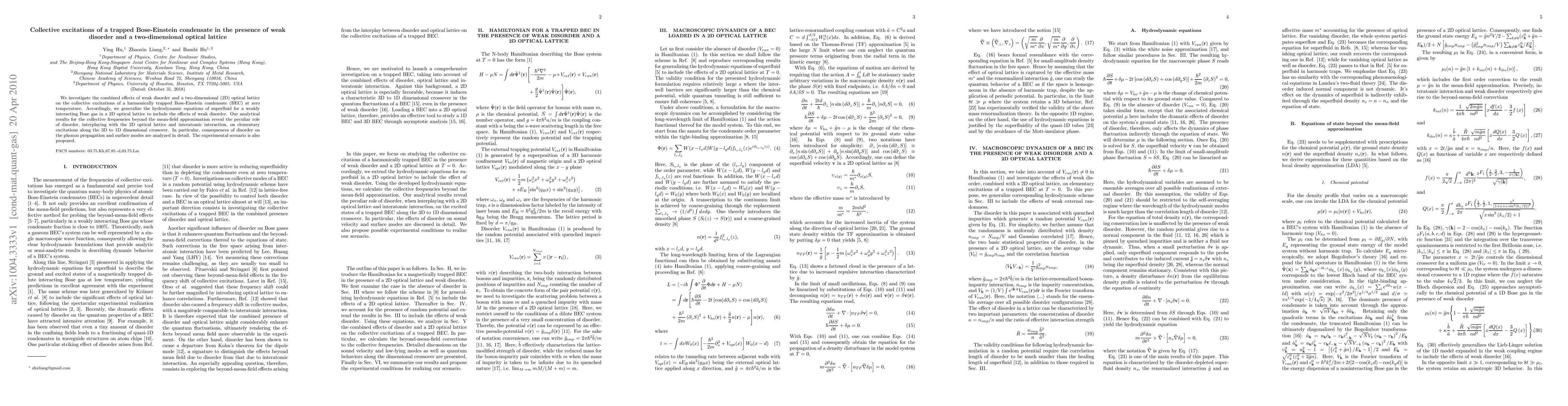 This paper studies the influence of weak disorder and a two-dimensional optical lattice on the collective excitations in a trapped Bose-Einstein condensate at zero temperature, generalizing hydrodynamic equations to include disorder effects. The results highlight how disorder impacts phonon propagation and surface modes, particularly during the transition from three-dimensional to one-dimensional behavior.