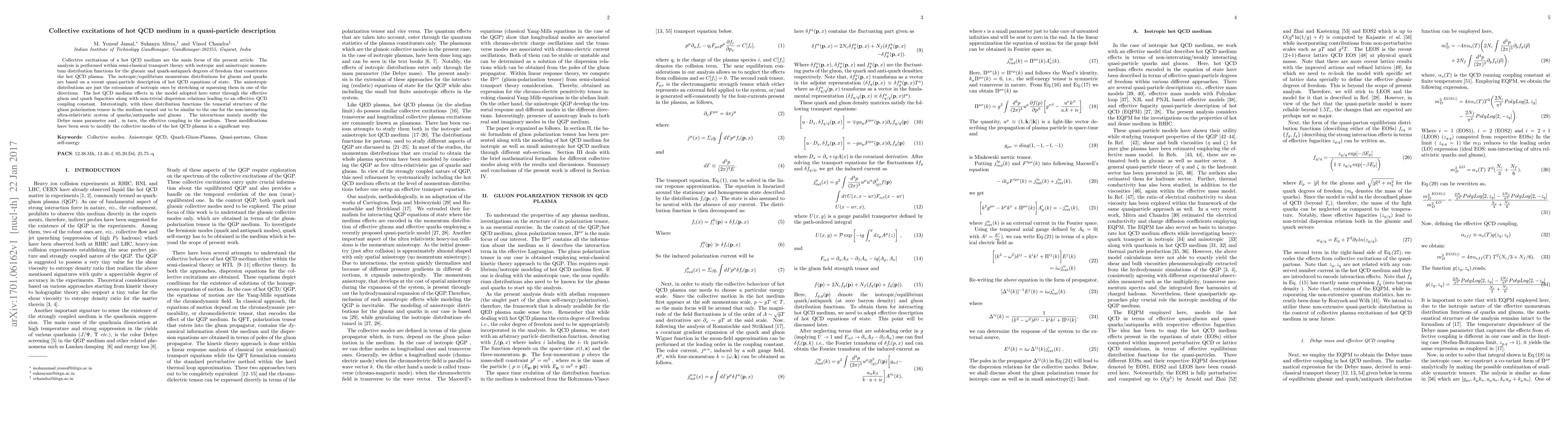 This paper investigates collective excitations in a hot QCD medium using semi-classical transport theory, employing quasi-particle descriptions for gluons and quarks. The study reveals that interactions modify the Debye mass and effective coupling, significantly altering the collective modes of the plasma.