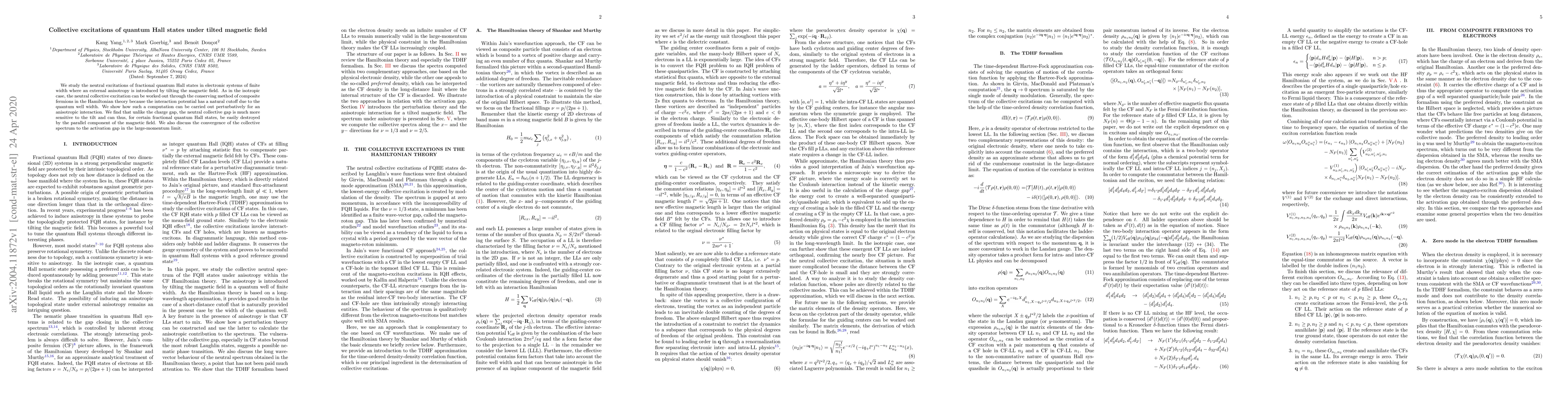 We study the neutral excitations of fractional quantum Hall states in electronic systems of finite width where an external anisotropy is introduced by tilting the magnetic field. As in the isotropic case, the neutral collective excitation can be worked out through the conserving method of composite fermions in the Hamiltonian theory because the interaction potential has a natural cutoff due to the quantum well width. We show how such a computation can be carried out perturbatively for an anisotropic interaction. We find that unlike the charge gap, the neutral collective gap is much more sensitive to the tilt and can thus, for certain fractional quantum Hall states, be easily destroyed by the parallel component of the magnetic field. We also discuss the convergence of the collective spectrum to the activation gap in the large-momentum limit.