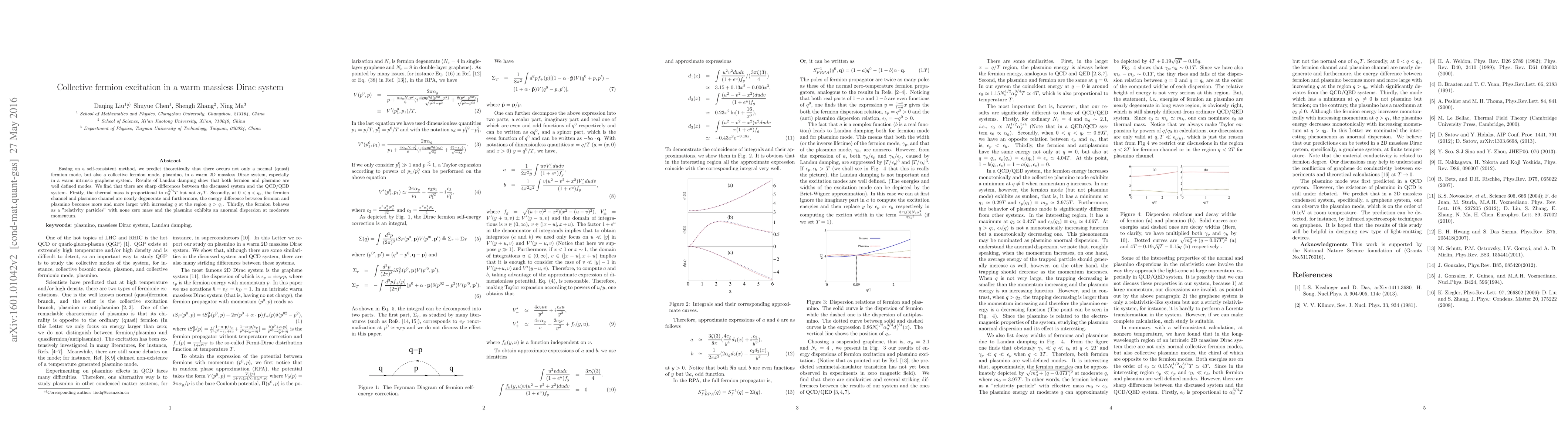 mode, plasmino, in a warm 2D massless Dirac system, especially in a warm