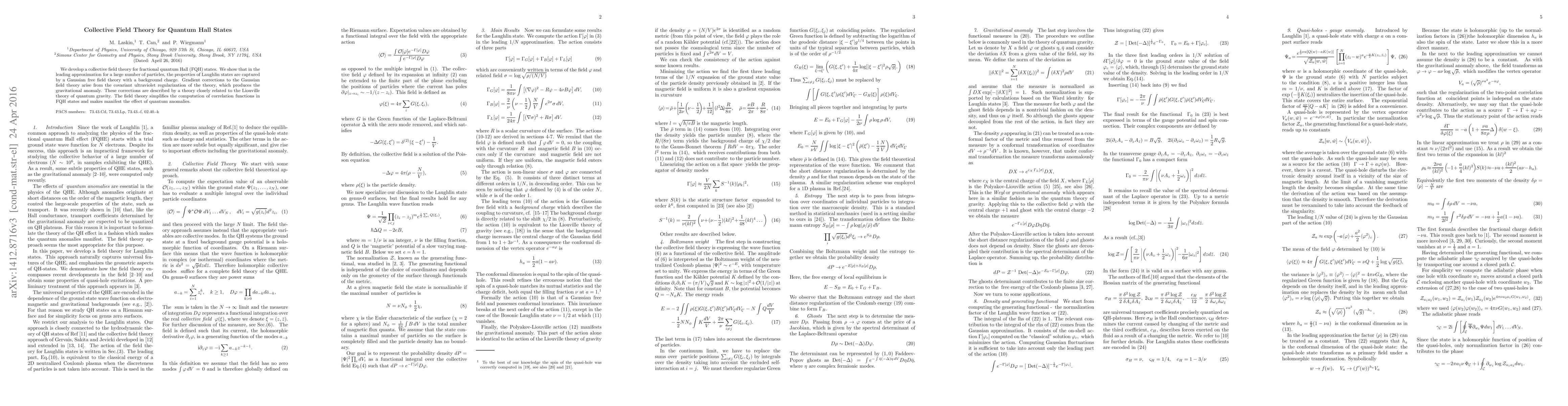 This paper develops a collective field theory for fractional quantum Hall states, capturing their properties with a Gaussian free field theory and highlighting the origin of gravitational anomalies in ultraviolet regularization.