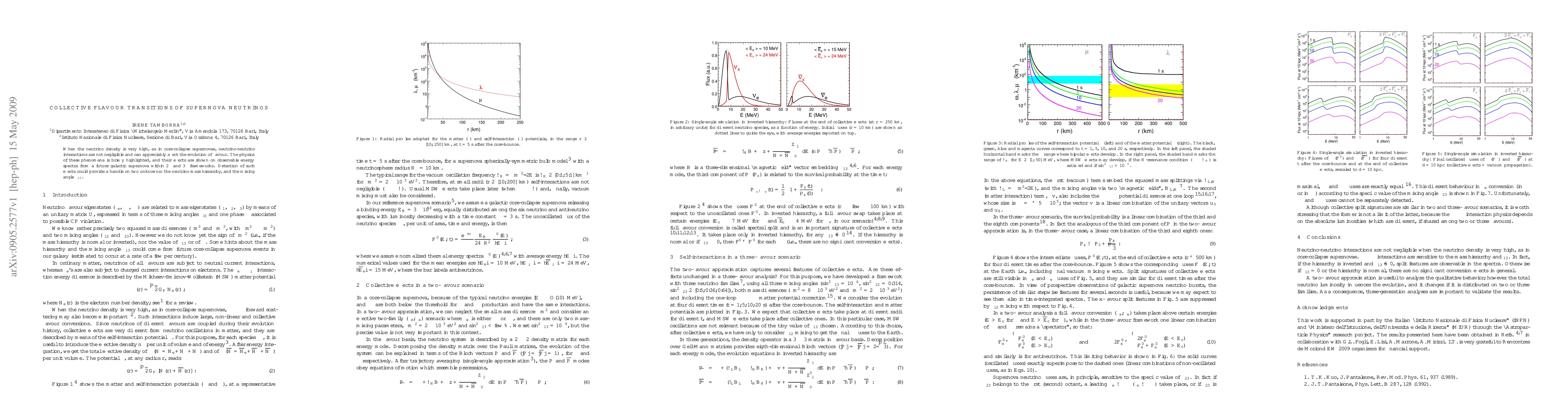 When the neutrino density is very high, as in core-collapse supernovae, neutrino-neutrino interactions are not negligible and can appreciably affect the evolution of flavour. The physics of these phenomena is briefly highlighted, and their effects are shown on observable energy spectra from a future galactic supernova within two-neutrino and three-neutrino frameworks. Detection of such effects could provide a handle on two unknowns: the neutrino mass hierarchy, and the mixing angle theta(13).