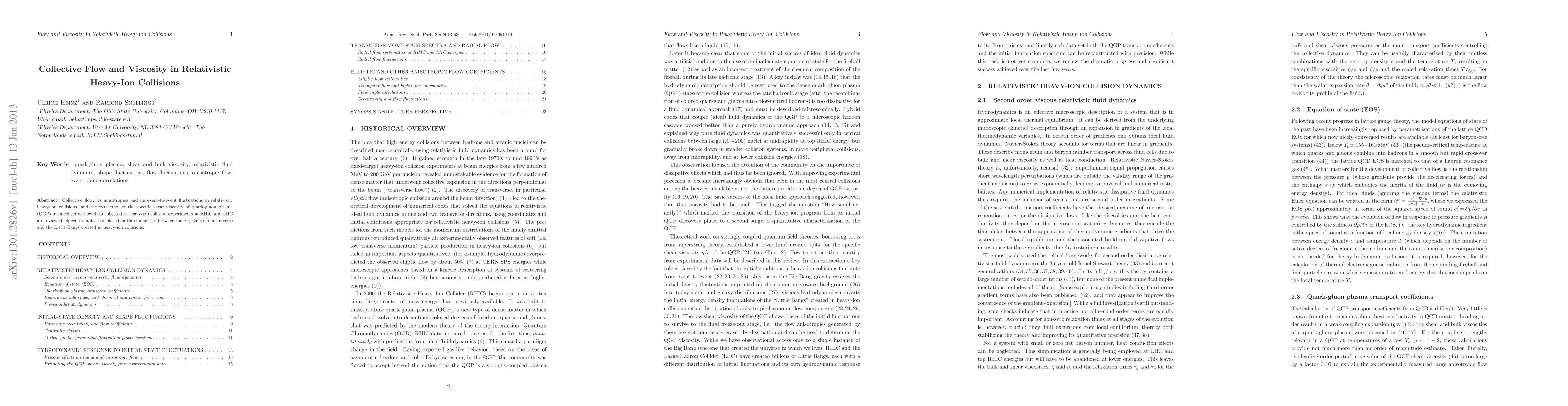 This paper reviews collective flow, its anisotropies, and fluctuations in relativistic heavy-ion collisions, focusing on extracting the specific shear viscosity of quark-gluon plasma (QGP) from experimental data at RHIC and LHC, and highlights parallels between these collisions and the Big Bang.