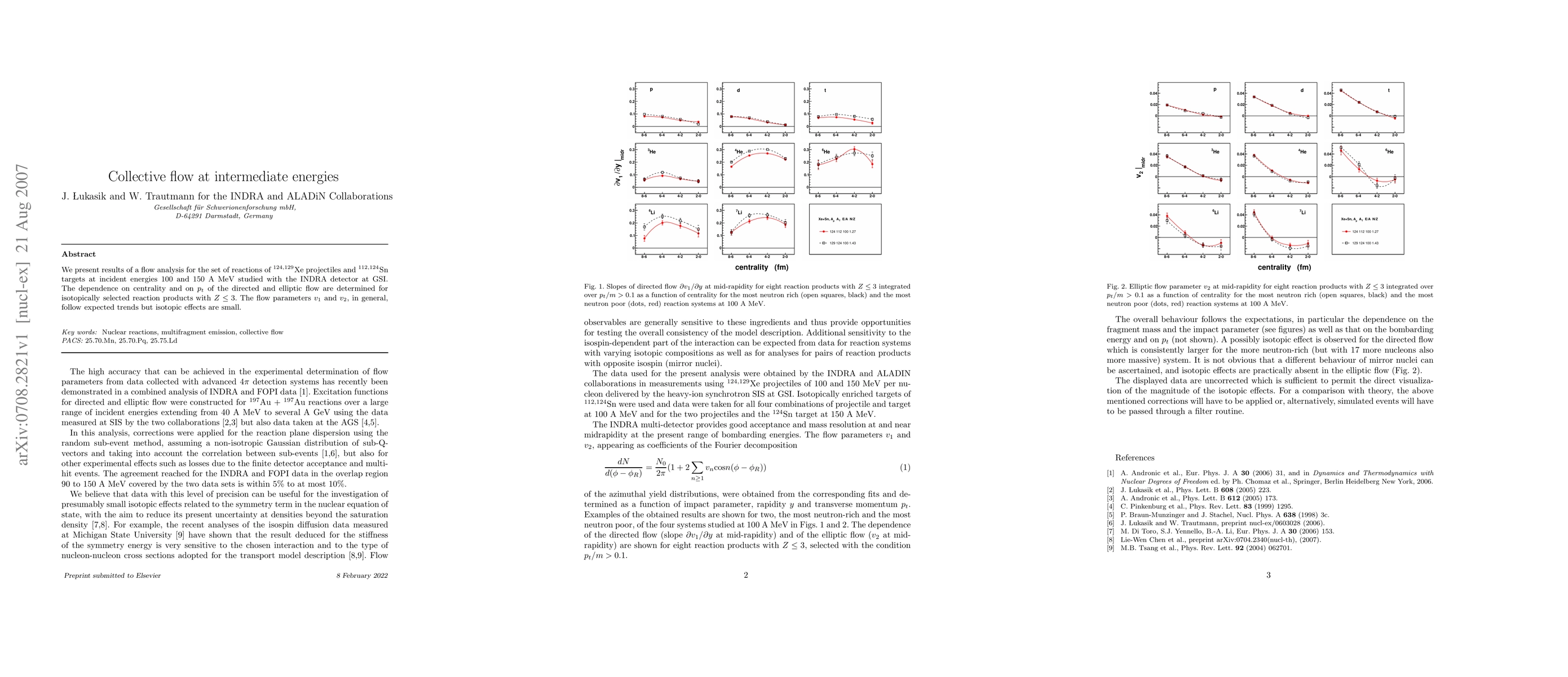 This paper analyzes collective flow in heavy ion collisions at intermediate energies using INDRA detector data, focusing on reactions involving 124,129Xe projectiles and 112,124Sn targets at 100 and 150 A MeV. It finds that directed and elliptic flow depend on centrality and transverse momentum, with flow parameters v_1 and v_2 generally following expected trends despite small isotopic effects.