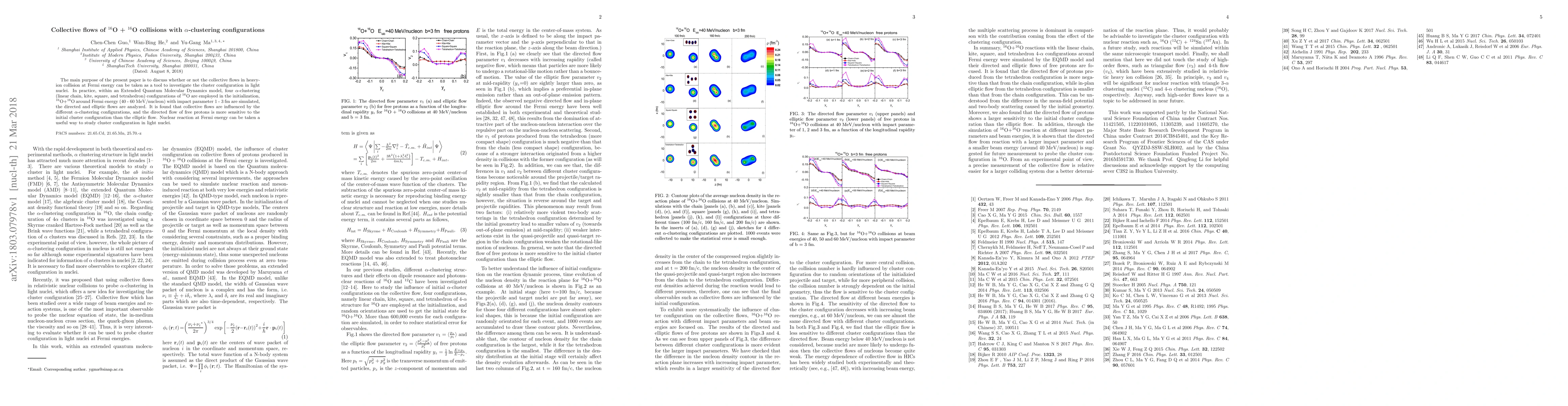 The main purpose of the present paper is to discuss whether or not the collective flows in heavy-ion collision at Fermi energy can be taken as a tool to investigate the cluster configuration in light nuclei. In practice, within an Extended Quantum Molecular Dynamics model, four $\alpha$-clustering (linear chain, kite, square, and tetrahedron) configurations of $^{16}$O are employed in the initialization, $^{16}$O+$^{16}$O around Fermi energy (40 - 60 MeV$/$nucleon) with impact parameter 1 - 3 fm are simulated, the directed and elliptic flows are analyzed. It is found that collective flows are influenced by the different $\alpha$-clustering configurations, and the directed flow of free protons is more sensitive to the initial cluster configuration than the elliptic flow. Nuclear reaction at Fermi energy can be taken a useful way to study cluster configuration in light nuclei.