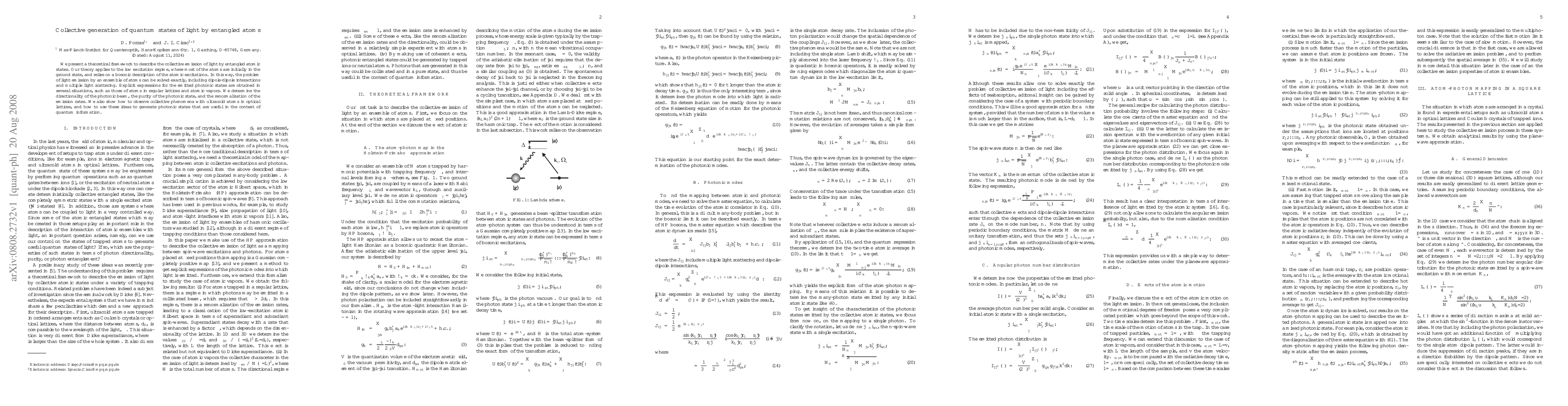 This paper develops a theoretical framework for the collective emission of light by entangled atomic states, providing exact solutions for photonic states in various atomic configurations, including lattices and vapors. It explores the directionality, purity, and emission rate renormalization, and proposes applications in quantum information using ultracold atoms.