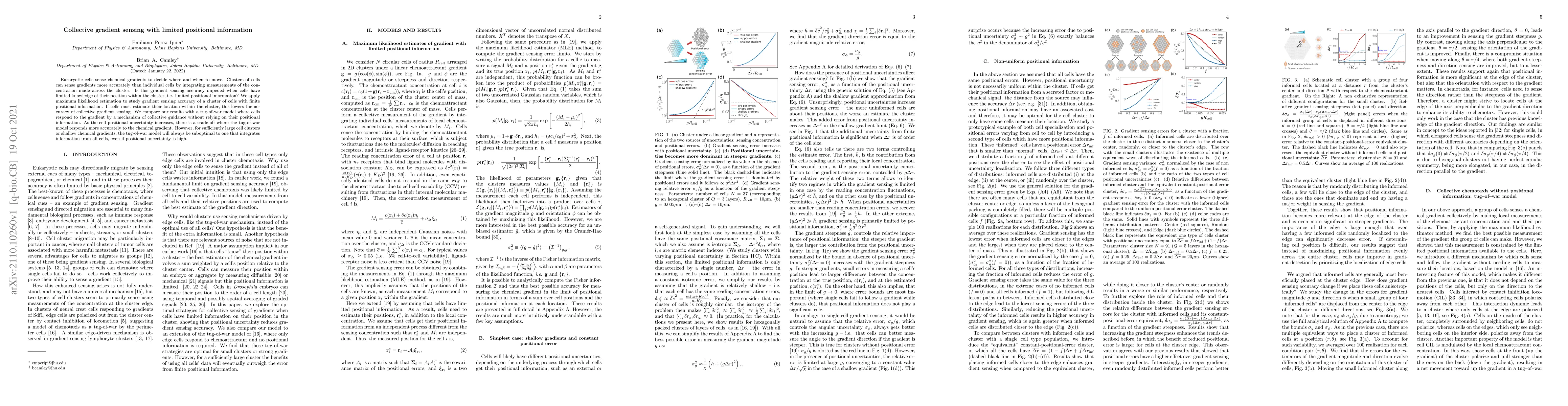 Eukaryotic cells sense chemical gradients to decide where and when to move. Clusters of cells can sense gradients more accurately than individual cells by integrating measurements of the concentration made across the cluster. Is this gradient sensing accuracy impeded when cells have limited knowledge of their position within the cluster, i.e. limited positional information? We apply maximum likelihood estimation to study gradient sensing accuracy of a cluster of cells with finite positional information. If cells must estimate their location within the cluster, this lowers the accuracy of collective gradient sensing. We compare our results with a tug-of-war model where cells respond to the gradient by a mechanism of collective guidance without relying on their positional information. As the cell positional uncertainty increases, there is a trade-off where the tug-of-war model responds more accurately to the chemical gradient. However, for sufficiently large cell clusters or shallow chemical gradients, the tug-of-war model will always be suboptimal to one that integrates information from all cells, even if positional uncertainty is high.
