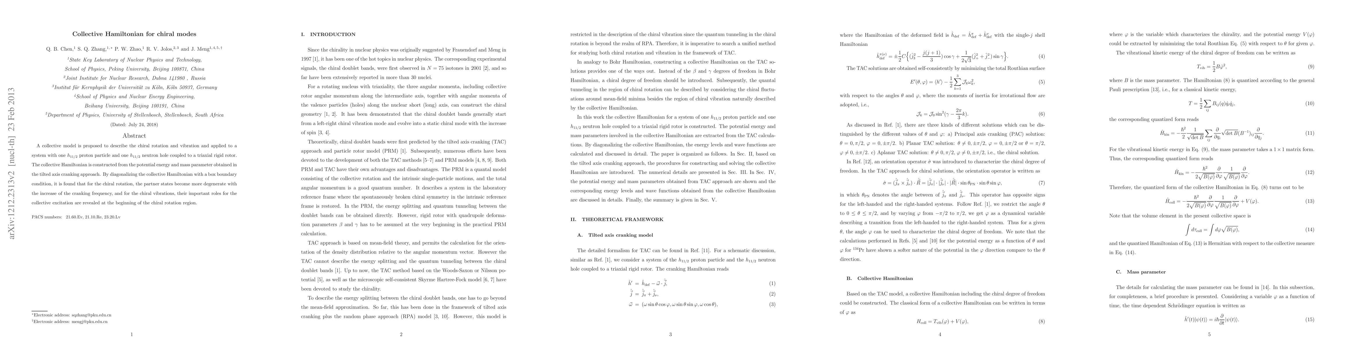 A collective model describes chiral rotation and vibration in a system with a proton and neutron, showing partner states become more degenerate as cranking frequency increases, highlighting their role in early chiral rotation region.