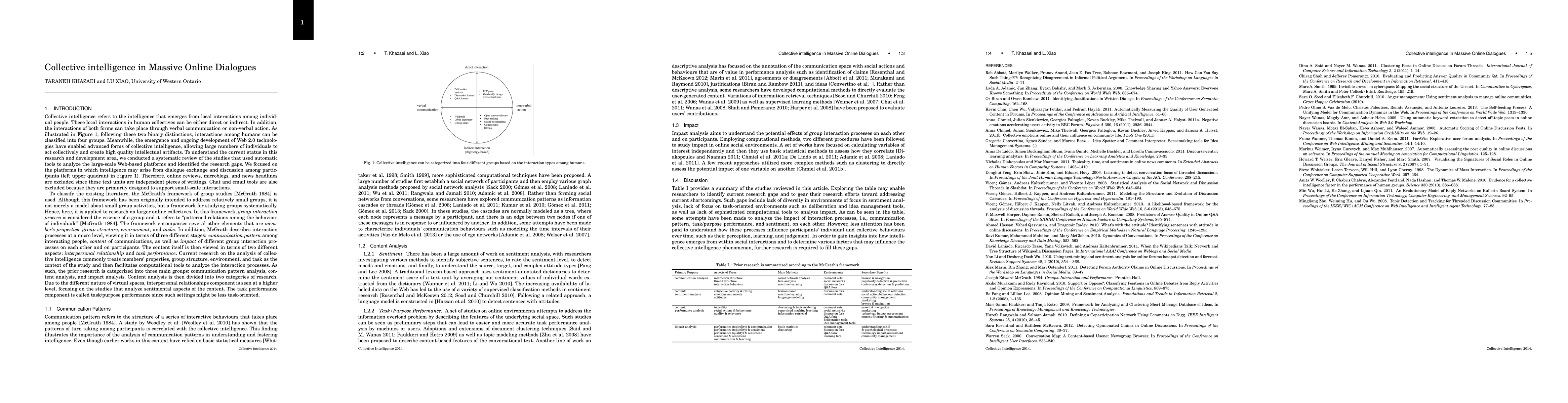 The emergence and ongoing development of Web 2.0 technologies have enabled new and advanced forms of collective intelligence at unprecedented scales, allowing large numbers of individuals to act collectively and create high quality intellectual artifacts. However, little is known about how and when they indeed promote collective intelligence. In this manuscript, we provide a survey of the automated tools developed to analyze discourse-centric collective intelligence. By conducting a thematic analysis of the current research direction, a set of gaps and limitations are identified.