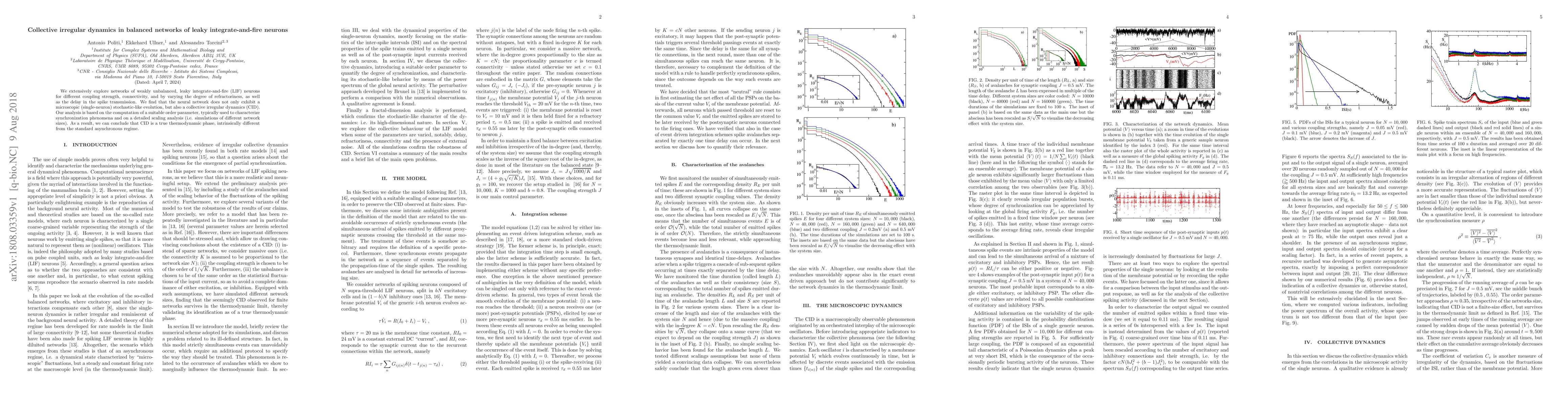 This paper investigates networks of leaky integrate-and-fire neurons under various coupling conditions and delays, revealing collective irregular dynamics (CID) distinct from asynchronous activity. The study uses an order parameter and scaling analysis to demonstrate that CID represents a unique thermodynamic phase.