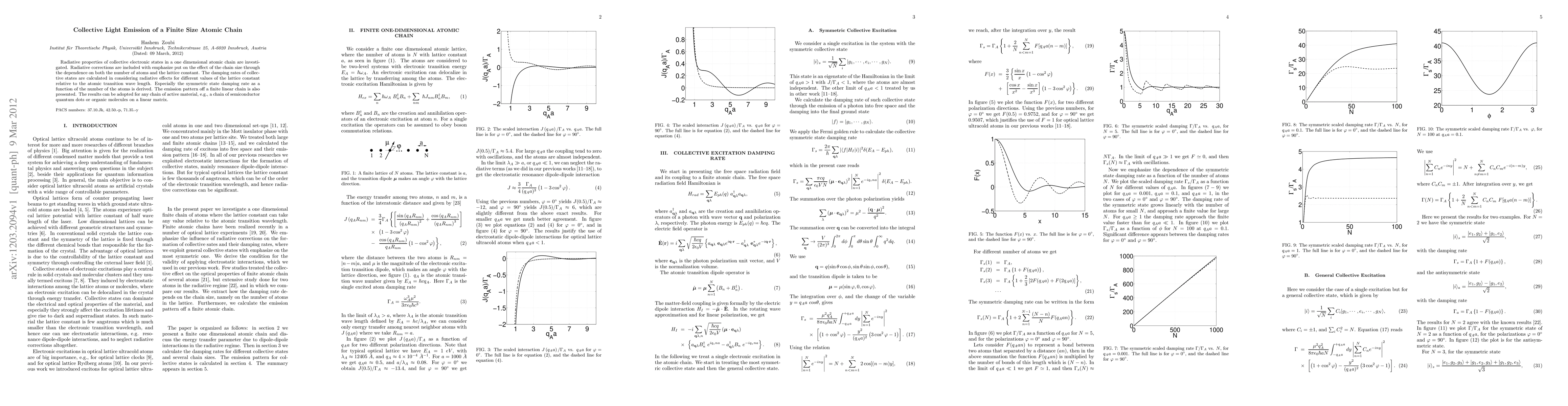 Researchers investigated the collective light emission of a finite size atomic chain, finding that radiative corrections significantly affect the damping rates of collective states, which vary with chain size and lattice constant.
