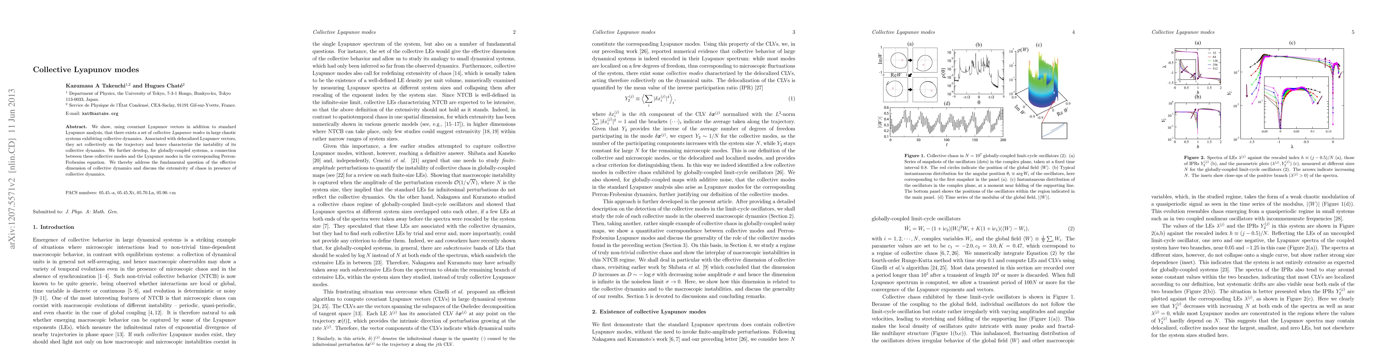 Researchers discover collective Lyapunov modes in chaotic systems that describe their collective instability and develop a connection to the system's Perron-Frobenius equation, shedding light on the effective dimension of collective dynamics.