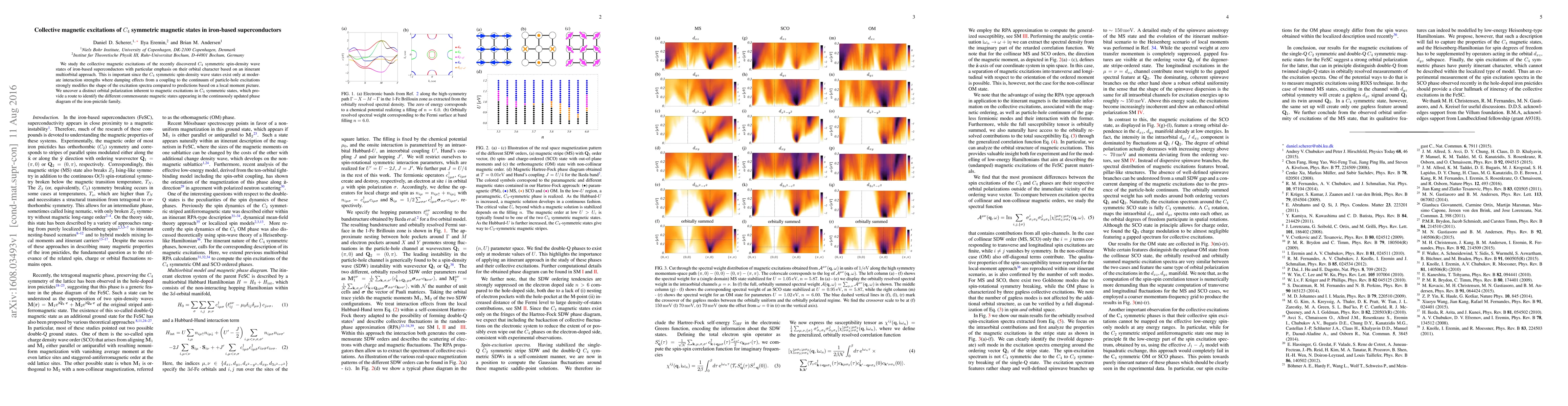 We study the collective magnetic excitations of the recently discovered $C_{4}$ symmetric spin-density wave states of iron-based superconductors with particular emphasis on their orbital character based on an itinerant multiorbital approach. This is important since the $C_{4}$ symmetric spin-density wave states exist only at moderate interaction strengths where damping effects from a coupling to the continuum of particle-hole excitations strongly modifies the shape of the excitation spectra compared to predictions based on a local moment picture. We uncover a distinct orbital polarization inherent to magnetic excitations in $C_{4}$ symmetric states, which provide a route to identify the different commensurate magnetic states appearing in the continuously updated phase diagram of the iron-pnictide family.