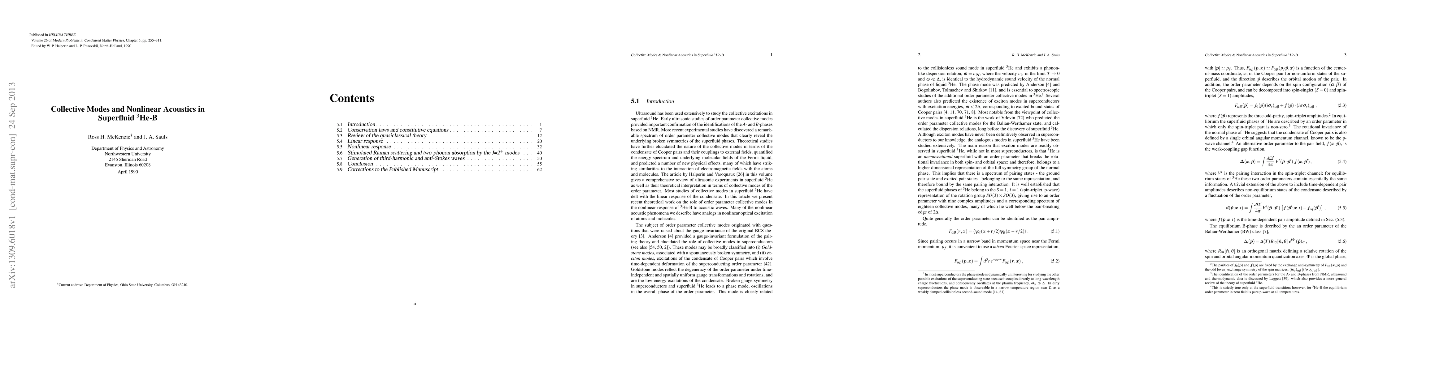 The work introduces a novel approach to studying nonlinear acoustics in superfluid 3He-B by linking order parameter collective modes to sound wave interactions, providing insights into previously unexplored phenomena like stimulated Raman scattering in this system.