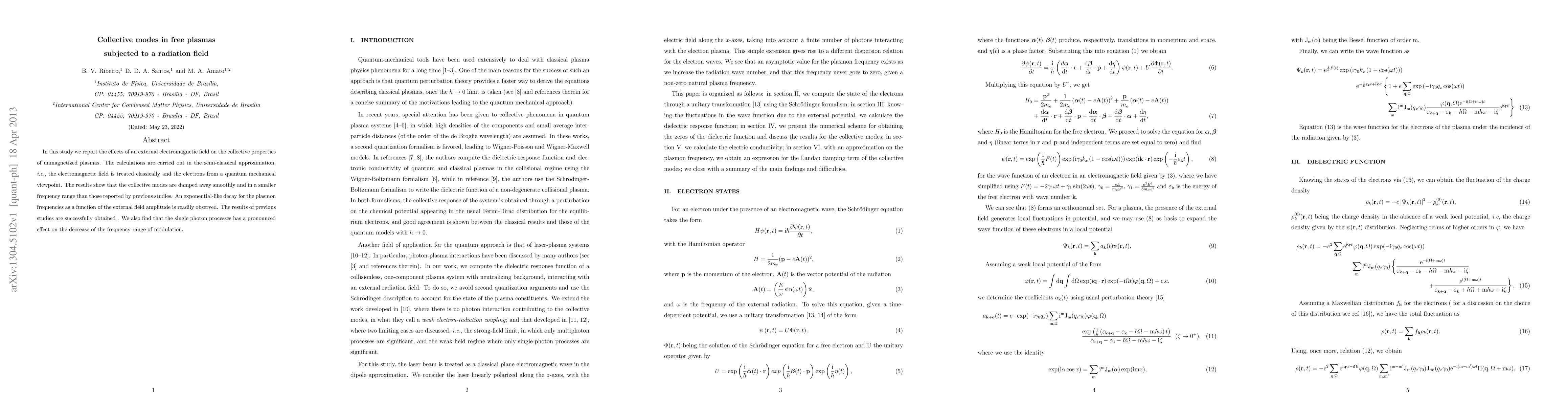 Researchers studied how an external electromagnetic field affects collective properties of unmagnetized plasmas, finding a smoother and smaller frequency range of damping than previous studies, with exponential-like decay of plasmon frequencies as field amplitude increases.