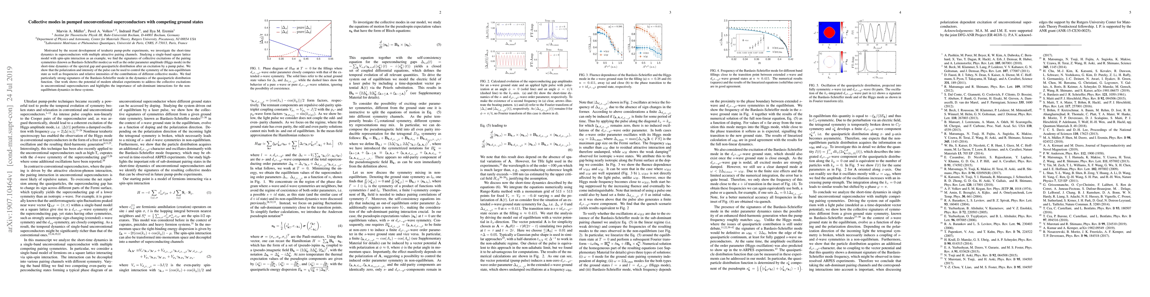 This paper investigates the short-time dynamics of unconventional superconductors with competing ground states, revealing signatures of collective modes in the spectral gap and quasiparticle distribution after a pump pulse. The study suggests that pulse polarization and intensity can control these modes, highlighting the potential of ultrafast experiments to explore these dynamics.