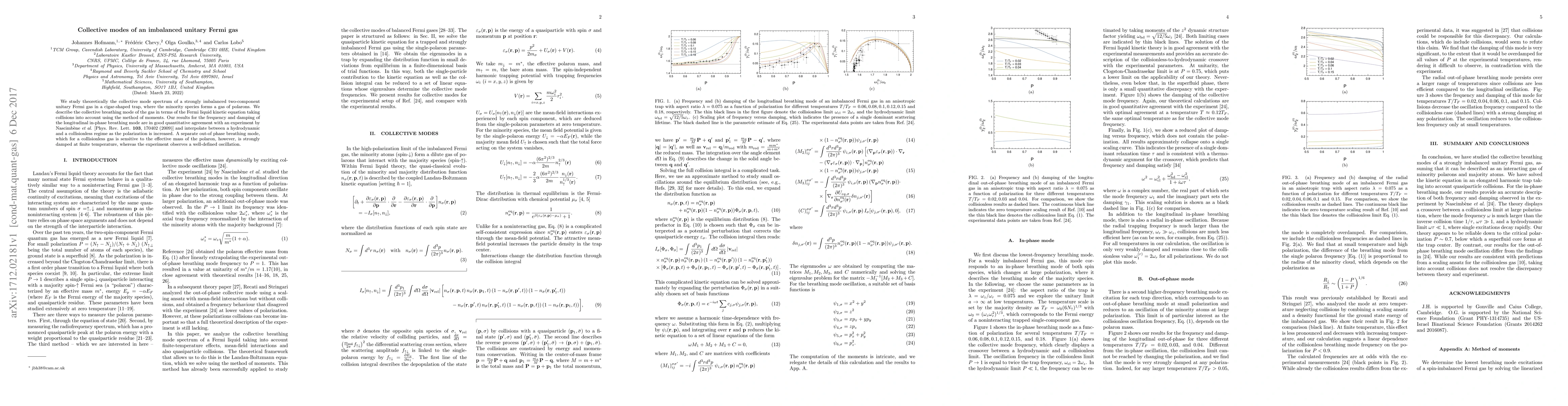 This paper theoretically investigates the collective modes in a strongly imbalanced unitary Fermi gas, focusing on the breathing modes. The study shows good agreement between theoretical results and experimental observations for the longitudinal in-phase mode, while explaining discrepancies for the out-of-phase mode due to finite temperature effects.