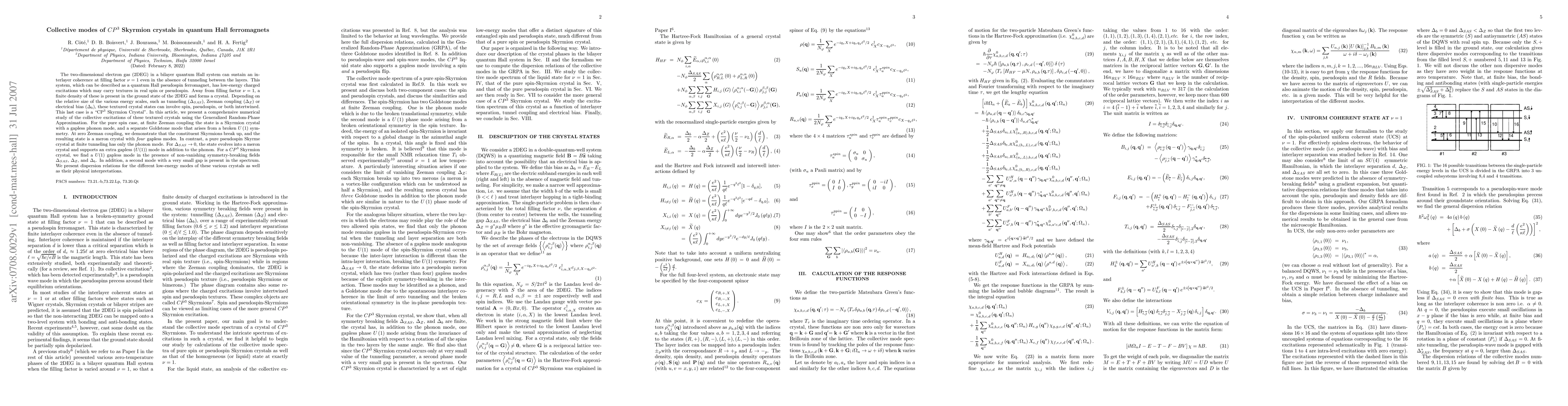 The two-dimensional electron gas in a bilayer quantum Hall system can sustain an interlayer coherence at filling factor nu=1 even in the absence of tunneling between the layers. This system has low-energy charged excitations which may carry textures in real spin or pseudospin. Away from filling factor nu =1 a finite density of these is present in the ground state of the 2DEG and forms a crystal. Depending on the relative size of the various energy scales, such as tunneling (Delta_SAS), Zeeman coupling (Delta_Z) or electrical bias (Delta_b), these textured crystal states can involve spin, pseudospin, or both intertwined. In this article, we present a comprehensive numerical study of the collective excitations of these textured crystals using the GRPA. For the pure spin case, at finite Zeeman coupling the state is a Skyrmion crystal with a gapless phonon mode, and a separate Goldstone mode that arises from a broken U(1) symmetry. At zero Zeeman coupling, we demonstrate that the constituent Skyrmions break up, and the resulting state is a meron crystal with 4 gapless modes. In contrast, a pure pseudospin Skyrme crystal at finite tunneling has only the phonon mode. For Delta_SAS=0, the state evolves into a meron crystal and supports an extra gapless U(1) mode in addition to the phonon. For a CP(3) Skyrmion crystal, we find a U(1) gapless mode in the presence of the symmetry-breaking fields. In addition, a second mode with a very small gap is present in the spectrum.