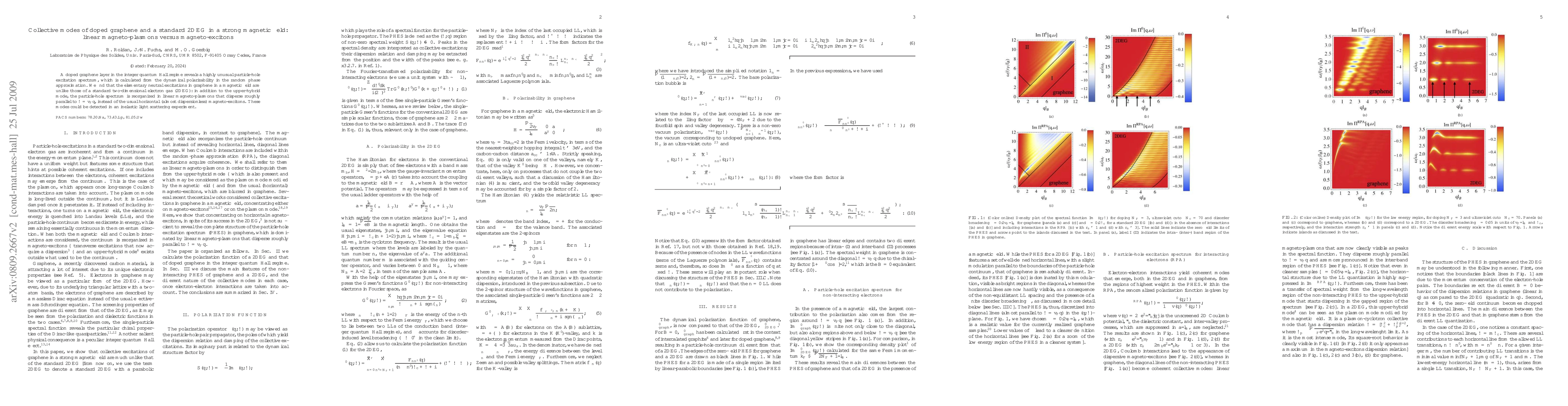This paper investigates the collective excitations in doped graphene and a standard 2DEG under a strong magnetic field, revealing that graphene exhibits linear magneto-plasmons instead of the usual dispersionless magneto-excitons found in 2DEGs. The findings suggest these unique modes could be observable via inelastic light scattering.