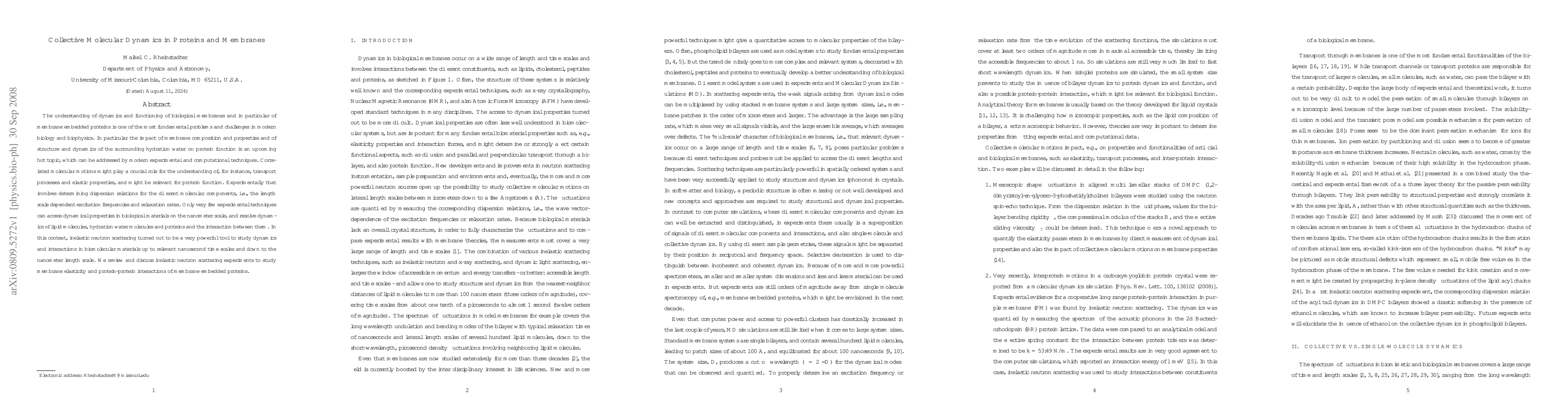 The understanding of dynamics and functioning of biological membranes and in particular of membrane embedded proteins is one of the most fundamental problems and challenges in modern biology and biophysics. In particular the impact of membrane composition and properties and of structure and dynamics of the surrounding hydration water on protein function is an upcoming hot topic, which can be addressed by modern experimental and computational techniques. Correlated molecular motions might play a crucial role for the understanding of, for instance, transport processes and elastic properties, and might be relevant for protein function. Experimentally that involves determining dispersion relations for the different molecular components, i.e., the length scale dependent excitation frequencies and relaxation rates. Only very few experimental techniques can access dynamical properties in biological materials on the nanometer scale, and resolve dynamics of lipid molecules, hydration water molecules and proteins and the interaction between them. In this context, inelastic neutron scattering turned out to be a very powerful tool to study dynamics and interactions in biomolecular materials up to relevant nanosecond time scales and down to the nanometer length scale. We review and discuss inelastic neutron scattering experiments to study membrane elasticity and protein-protein interactions of membrane embedded proteins.