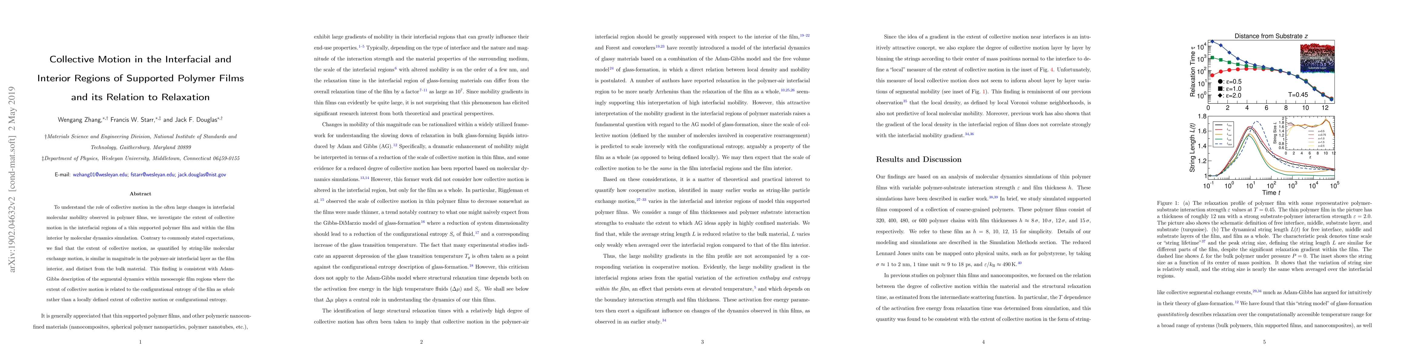 This research reveals that collective motion in the interfacial and interior regions of supported polymer films is similar in magnitude, contrary to expectations, and is linked to the film's overall configurational entropy rather than local properties, as described by the Adam-Gibbs theory.