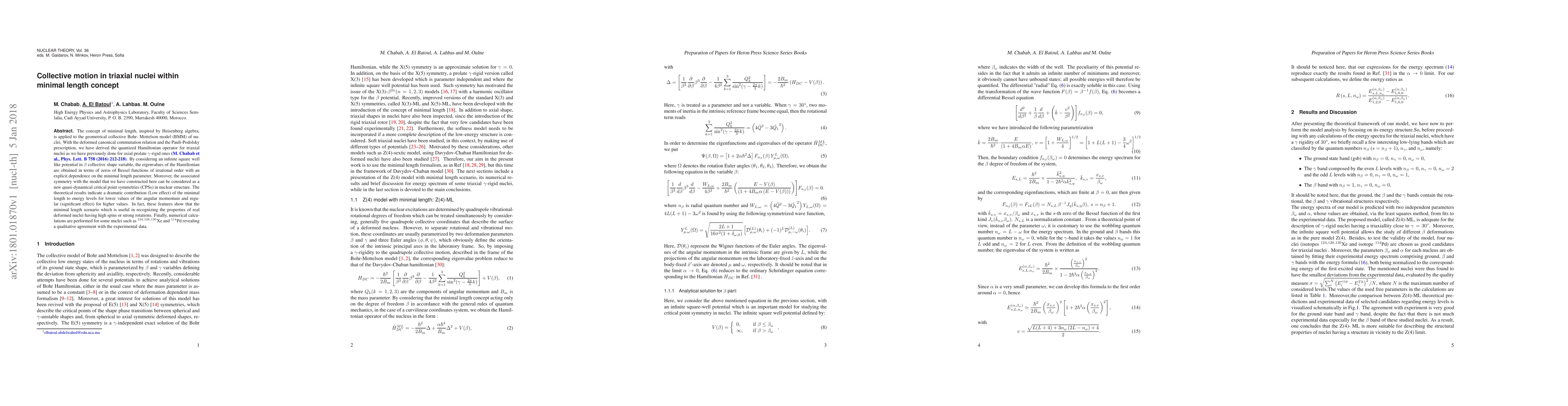 The concept of minimal length, inspired by Heisenberg algebra, is applied to the geometrical collective Bohr- Mottelson model (BMM) of nuclei. With the deformed canonical commutation relation and the Pauli-Podolsky prescription, we have derived the quantized Hamiltonian operator for triaxial nuclei as we have previously done for axial prolate $\gamma$-rigid ones (M. Chabab et al., Phys. Lett. B 758 (2016) 212-218). By considering an infinite square well like potential in $\beta$ collective shape variable, the eigenvalues of the Hamiltonian are obtained in terms of zeros of Bessel functions of irrational order with an explicit dependence on the minimal length parameter. Moreover, the associated symmetry with the model that we have constructed here can be considered as a new quasi-dynamical critical point symmetries (CPSs) in nuclear structure. The theoretical results indicate a dramatic contribution (Low effect) of the minimal length to energy levels for lower values of the angular momentum and regular (significant effect) for higher values. In fact, these features show that the minimal length scenario which is useful in recognizing the properties of real deformed nuclei having high spins or strong rotations. Finally, numerical calculations are performed for some nuclei such as ${}^{124,128,130}$Xe and ${}^{114}$Pd revealing a qualitative agreement with the experimental data.