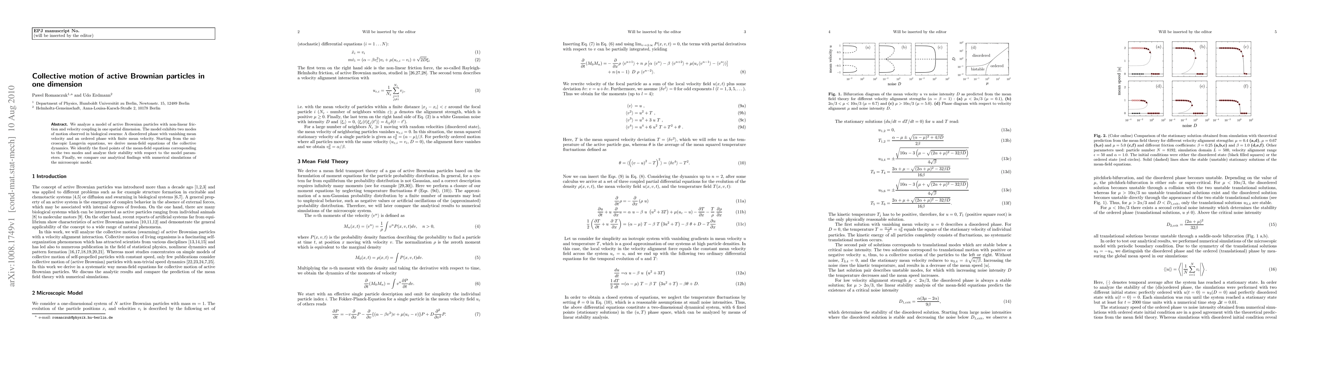 We analyze a model of active Brownian particles with non-linear friction and velocity coupling in one spatial dimension. The model exhibits two modes of motion observed in biological swarms: A disordered phase with vanishing mean velocity and an ordered phase with finite mean velocity. Starting from the microscopic Langevin equations, we derive mean-field equations of the collective dynamics. We identify the fixed points of the mean-field equations corresponding to the two modes and analyze their stability with respect to the model parameters. Finally, we compare our analytical findings with numerical simulations of the microscopic model.