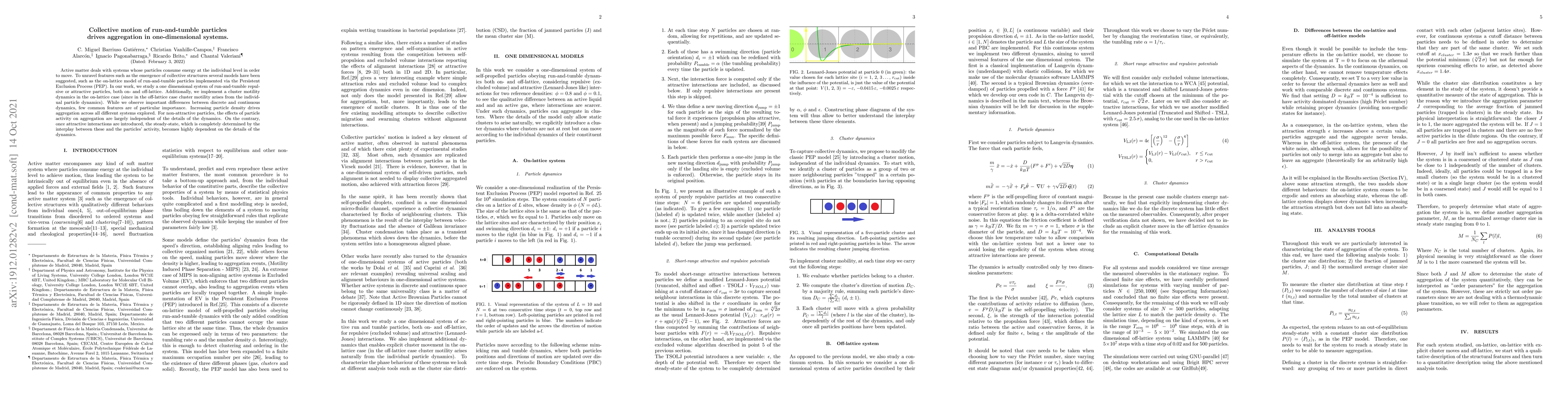 Active matter deals with systems whose particles consume energy at the individual level in order to move. To unravel features such as the emergence of collective structures several models have been suggested, such as the on-lattice model of run-and-tumble particles implemented via the Persistent Exclusion Process (PEP). In our work, we study a one dimensional system of run-and-tumble repulsive or attractive particles, both on and off lattice. Additionally, we implement a cluster motility dynamics in the on-lattice case (since in the off-lattice case cluster motility arises from the individual particle dynamics). While we observe important differences between discrete and continuous dynamics, few common features are of particular importance. Increasing particle density drives aggregation across all different systems explored. For non-attractive particles, the effects of particle activity on aggregation are largely independent of the details of the dynamics. On the contrary, once attractive interactions are introduced, the steady state, which is completely determined by the interplay between these and the particles' activity, becomes highly dependent on the details of the dynamics.