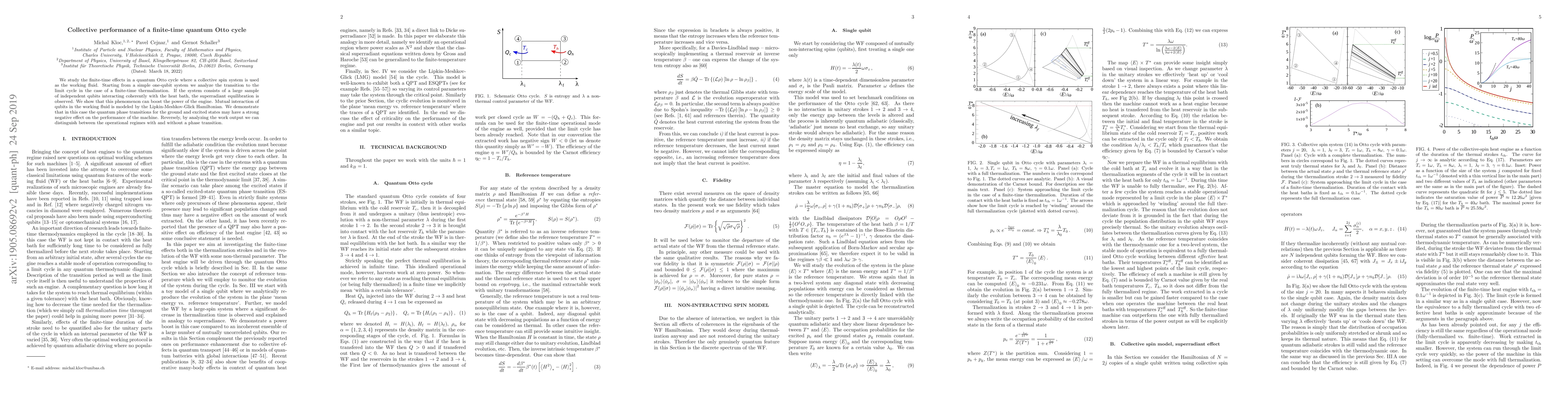 This paper investigates the finite-time performance of a quantum Otto cycle using a collective spin system as the working fluid, showing that superradiant equilibration can enhance engine power. It also highlights how quantum phase transitions can negatively impact the cycle's efficiency, and suggests that work output analysis can differentiate operational regimes with and without phase transitions.
