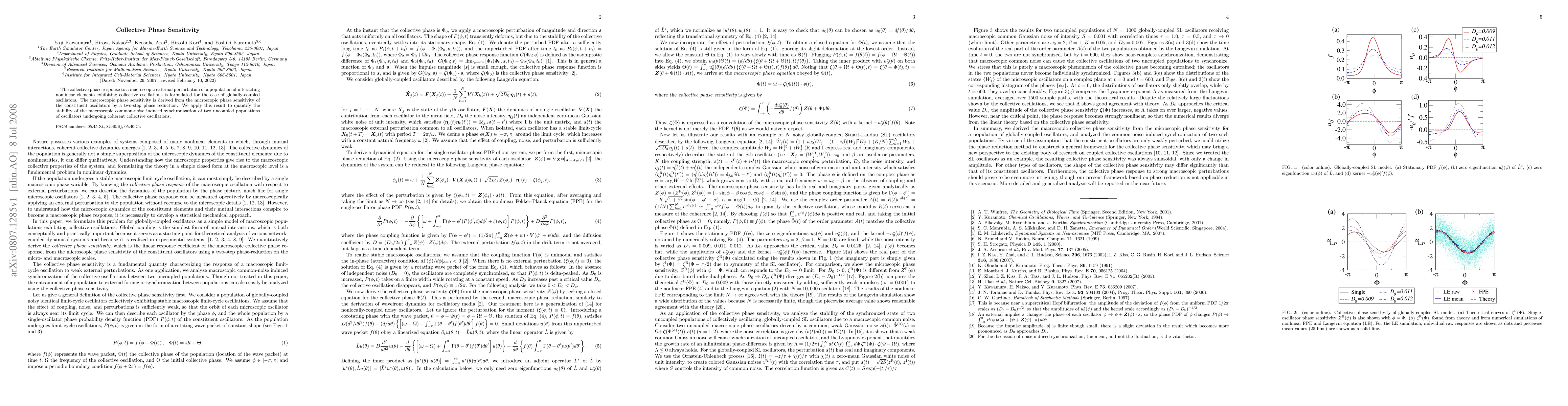 This paper formulates the collective phase response of globally-coupled oscillators to external perturbations and derives macroscopic phase sensitivity from individual oscillators. It applies this to assess the stability of synchronization induced by common noise in two uncoupled populations of oscillating elements.