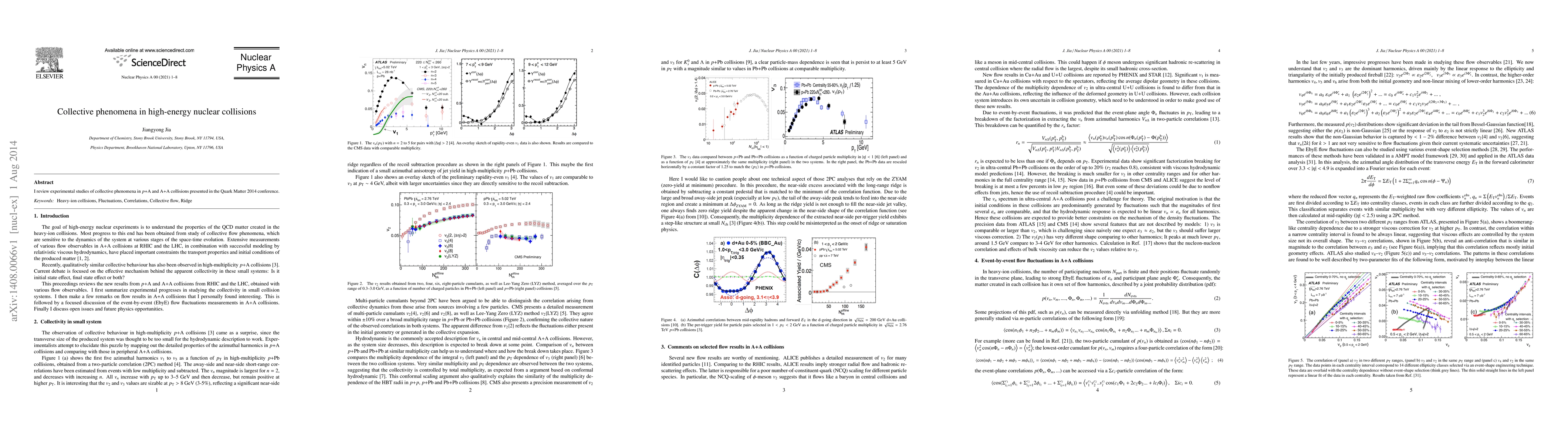I review experimental studies of collective phenomena in $\pA$ and A+A collisions presented in the Quark Matter 2014 conference.
